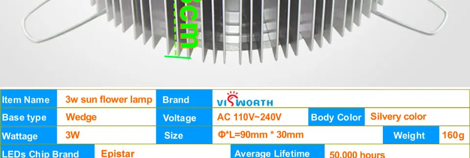 Светильник Настенный алюминиевый, 3 Вт, 110 В, 220 В, 240 В