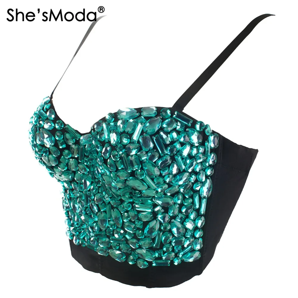 Бюстье ручной работы She'sModa, вышитый бисером, стразы, бюстье, жемчуг, бюстгальтер пуш-ап для ночного клуба, женский бюстгальтер, укороченный топ, жилет размера плюс