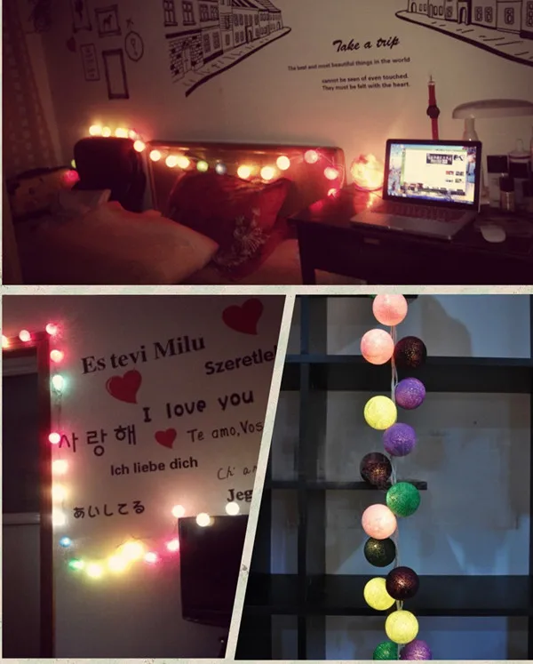 СВЕТОДИОДНАЯ Гирлянда в тайском стиле с ватными шариками, для вечерние НКИ, свадьбы, дома, спальни, лагеря, декора, 3 * AA, 110 В, 220 В, люминесцентная лампа
