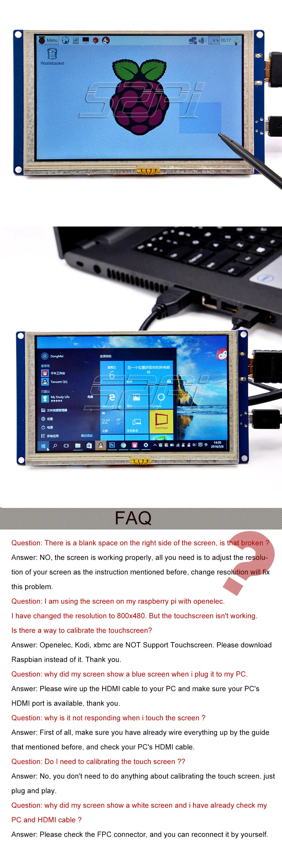 52-дюймовый сенсорный ЖК-дисплей для Raspberry Pi 4 B 2B 3B 3B Plus (3B +) ПК Windows