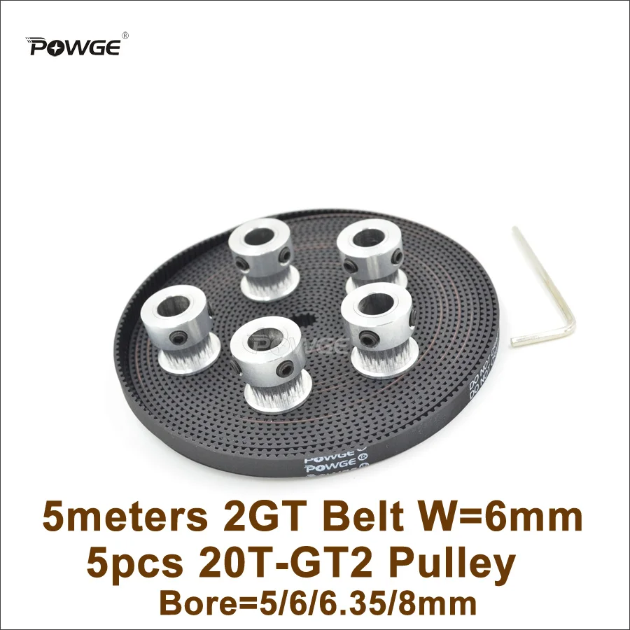 POWGE 5 шт. 20 зубцов GT2 зубчатый шкив Диаметр отверстия 566.358 мм + 5 м GT2 Ширина ремня ГРМ 6 мм 20 зубьев 20 T 2GT шкив 3D части принтера