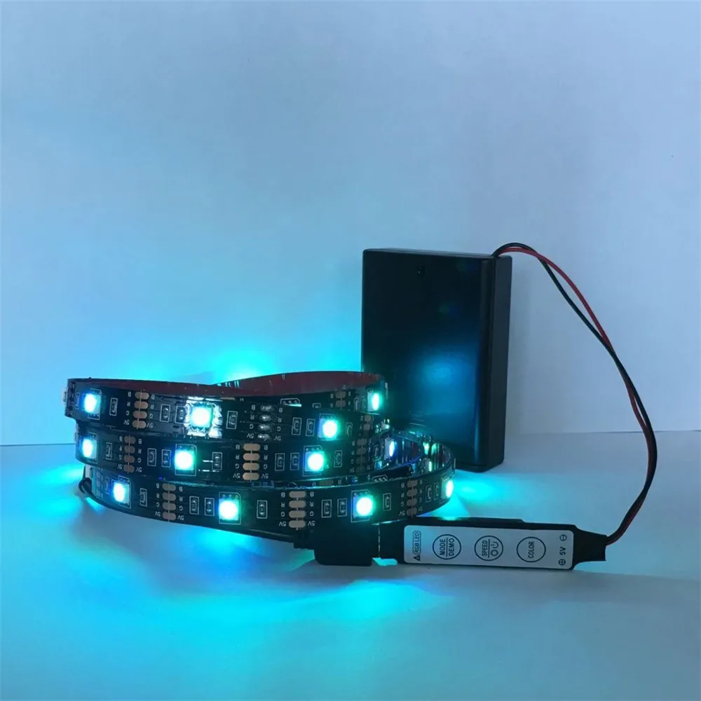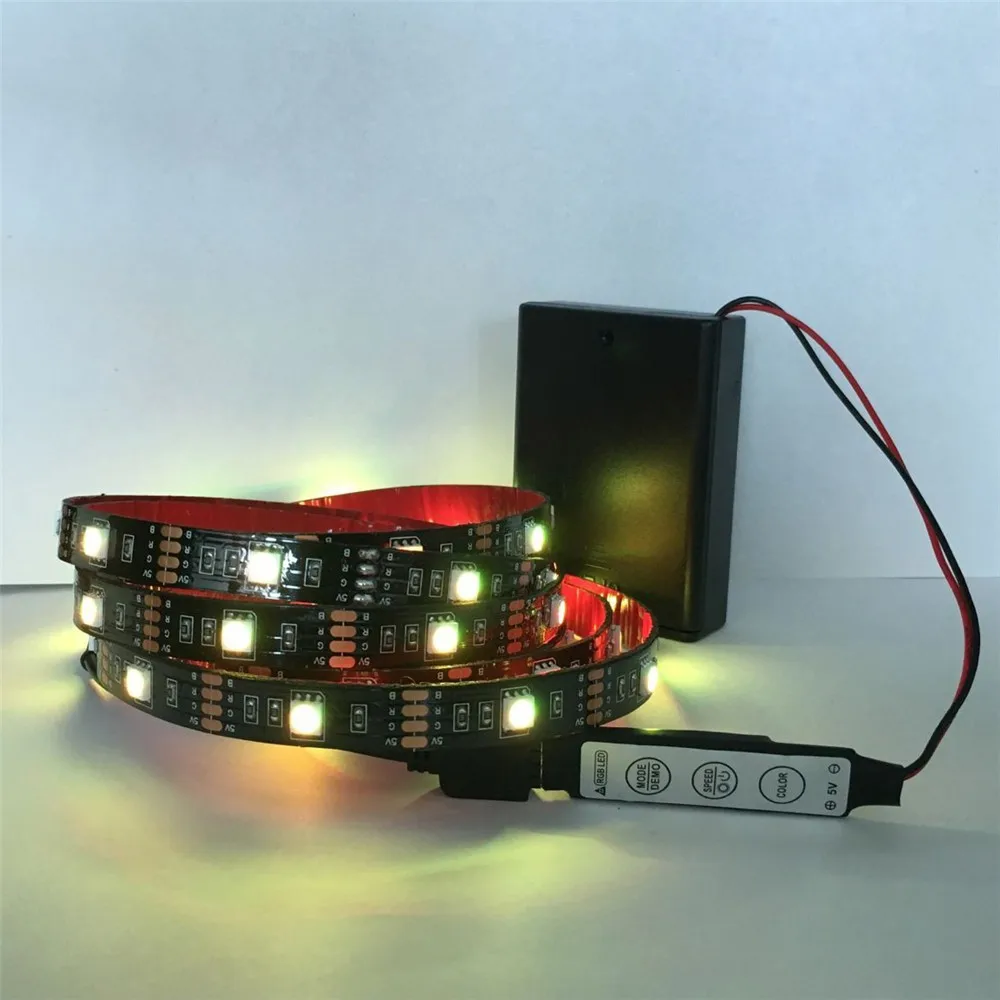 Светодиодная ленсветильник RGB 5050 на батарейках, 1 м, 2 м, IP20 IP65 с мини-контроллером RGB на 3 клавишипультом дистанционного управления RGB на 17 клавиш