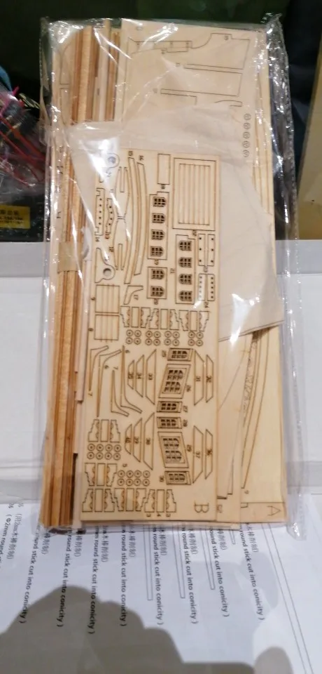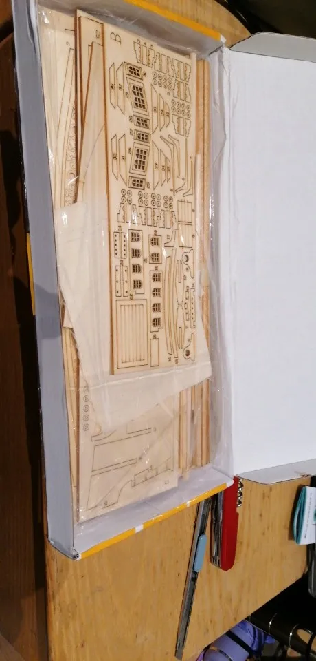 Коробка дошла в полном порядке. Лазерная резка на высоте. Нечего не покоробилось. Единственные минус очень тонкая фанера, максимально аккуратно нужно собирать. Сразу рекомендую купить пушки, декор и флаги - всё это в комплект не входит.