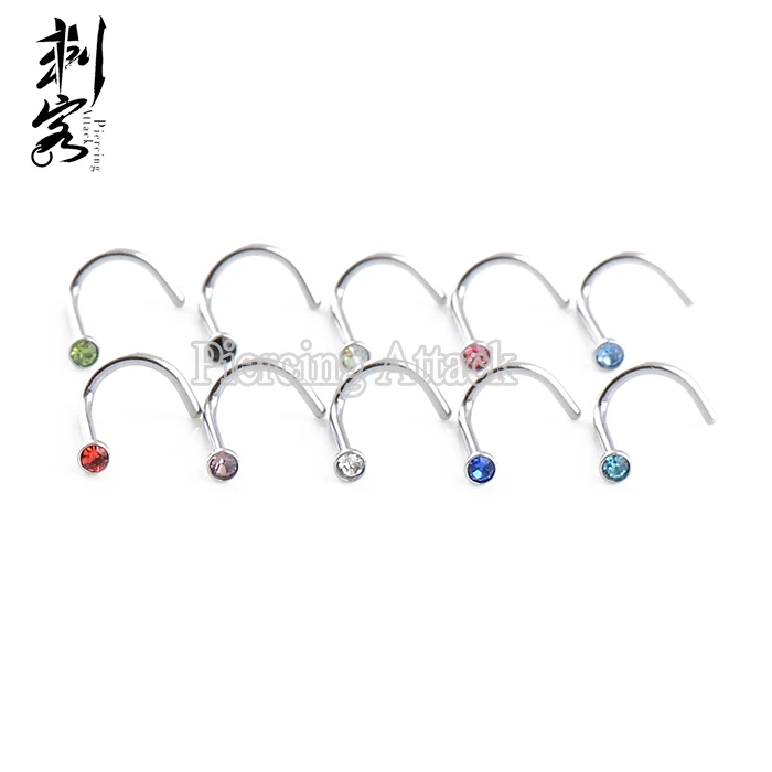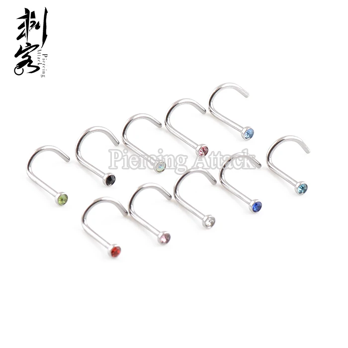 (Минимальный заказ $10) Бесплатная доставка Оптовая продажа ювелирных изделий для тела хирургическая стальная носовая шпилька шнековые прозрачные цветаЛот из 100