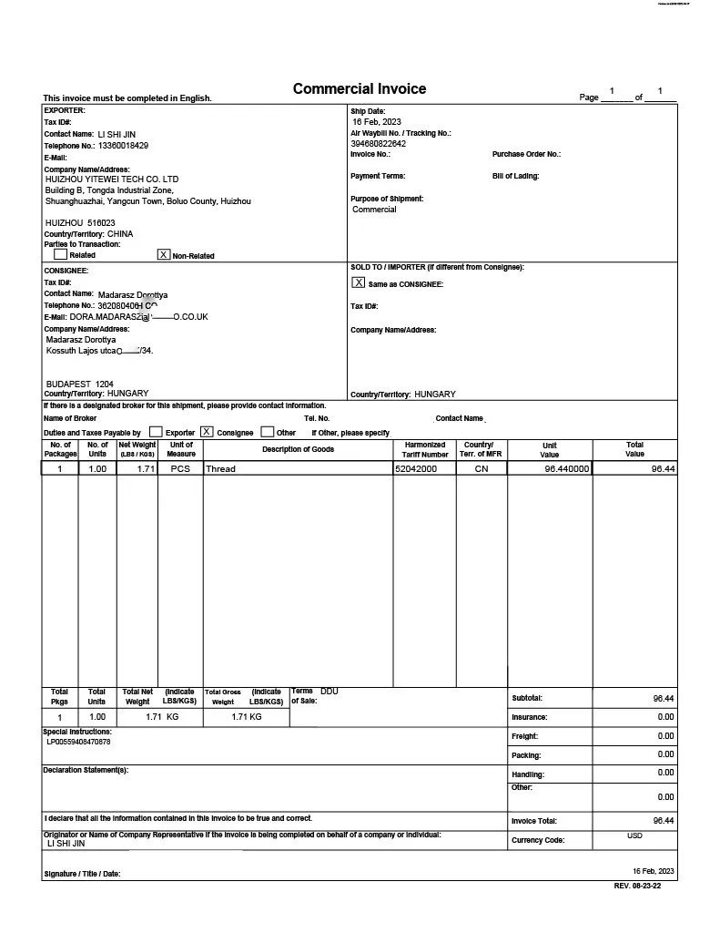 Согласно таможенным органам моей страны, налог с продаж (НДС) не был передан продавцом, а сохранен для него. Поэтому таможня хотела, чтобы я снова заплатил 27% налог с продаж, уже вычтенный на момент покупки. Продавец не включил имя Aliexpress и его номер, а также Имя продавца в накладную (Vommercial счет-фактуру), переданную Fedex. В качестве продавца была указана третья сторона, HUIZHOU YITEWEI TECH CO. LTD, в совершенно неправильной форме. Я больше никогда не буду покупать у этого продавца. В течение нескольких недель я был раздражен его подлостью.
