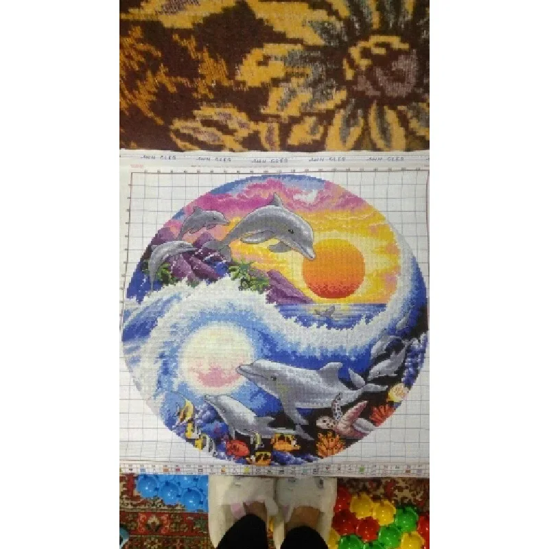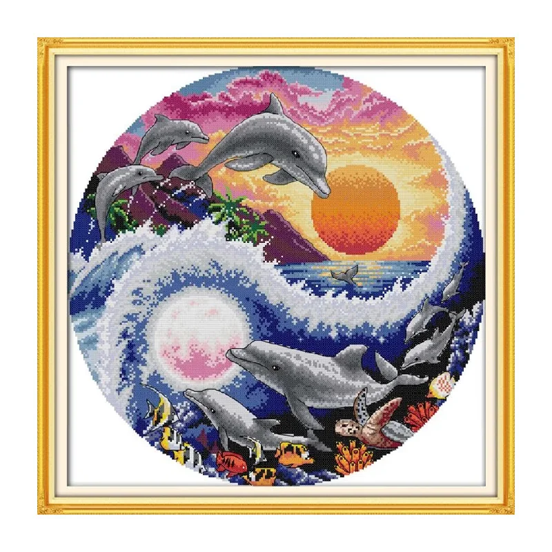 Солнце, Луна и Дельфины Набор для вышивания DIY размерная вышивка крестиком 11CT 14CT DMC Счетный набор крестиков для вышивания спиц рукоделие бесплатно