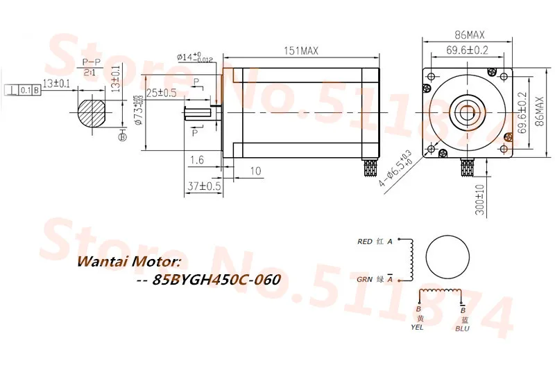 ЧПУ Wantai Nema42 шаговый двигатель 110BYGH150-001 3256oz-in 6.0A 1...
