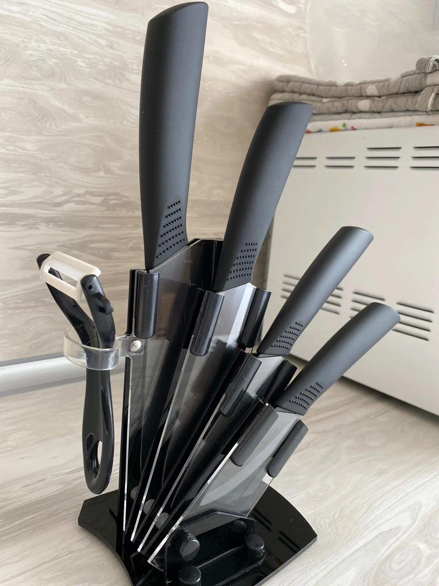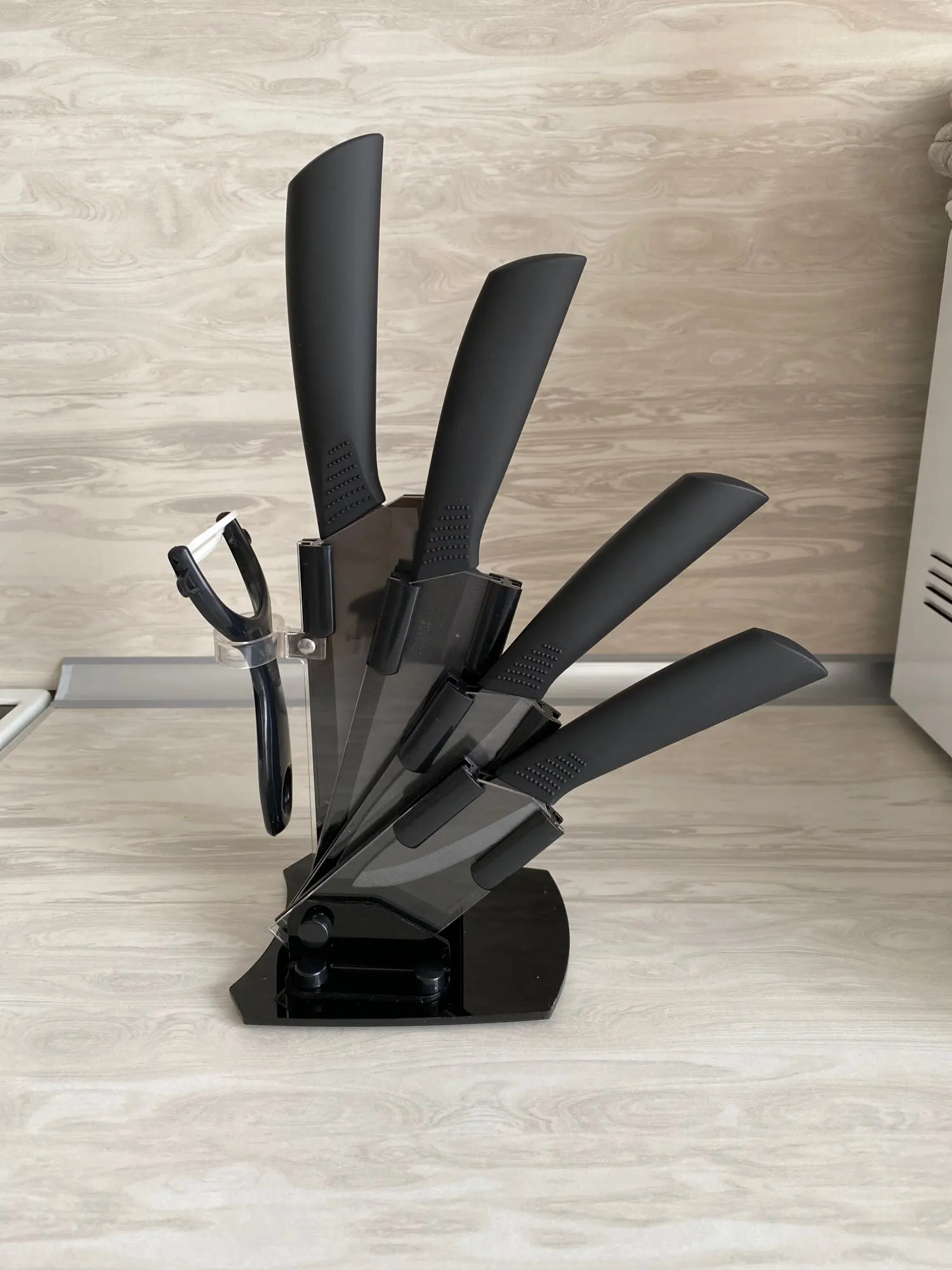Набор кухонных керамических ножей Timhome, 3 дюйма, 4 дюйма, 5 дюймов, 6 дюймов, Овощечистка + акриловая подставка, держатель, циркониевый нож для очистки овощей
