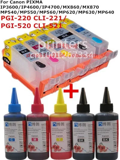 PGI-220/520BK/CLI-220/520 BK C M Y многоразовые картриджи