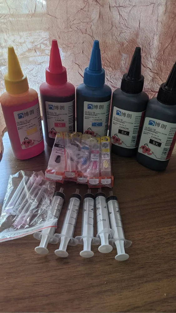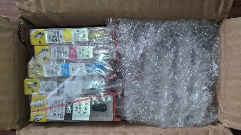 Посылка дошла за 23 дня, упаковано более-менее. Комплект полный, как и указано. Принтер PIXMA IP3600 сначала картриджи видеть не захотел, после танцев с бубном все заработало. Так же возникла небольшая проблема с черным картриджем, ибо плохо печатал. Решилось все выбором черного цвета со светлым оттенком. Итого ставлю 4 звезды.