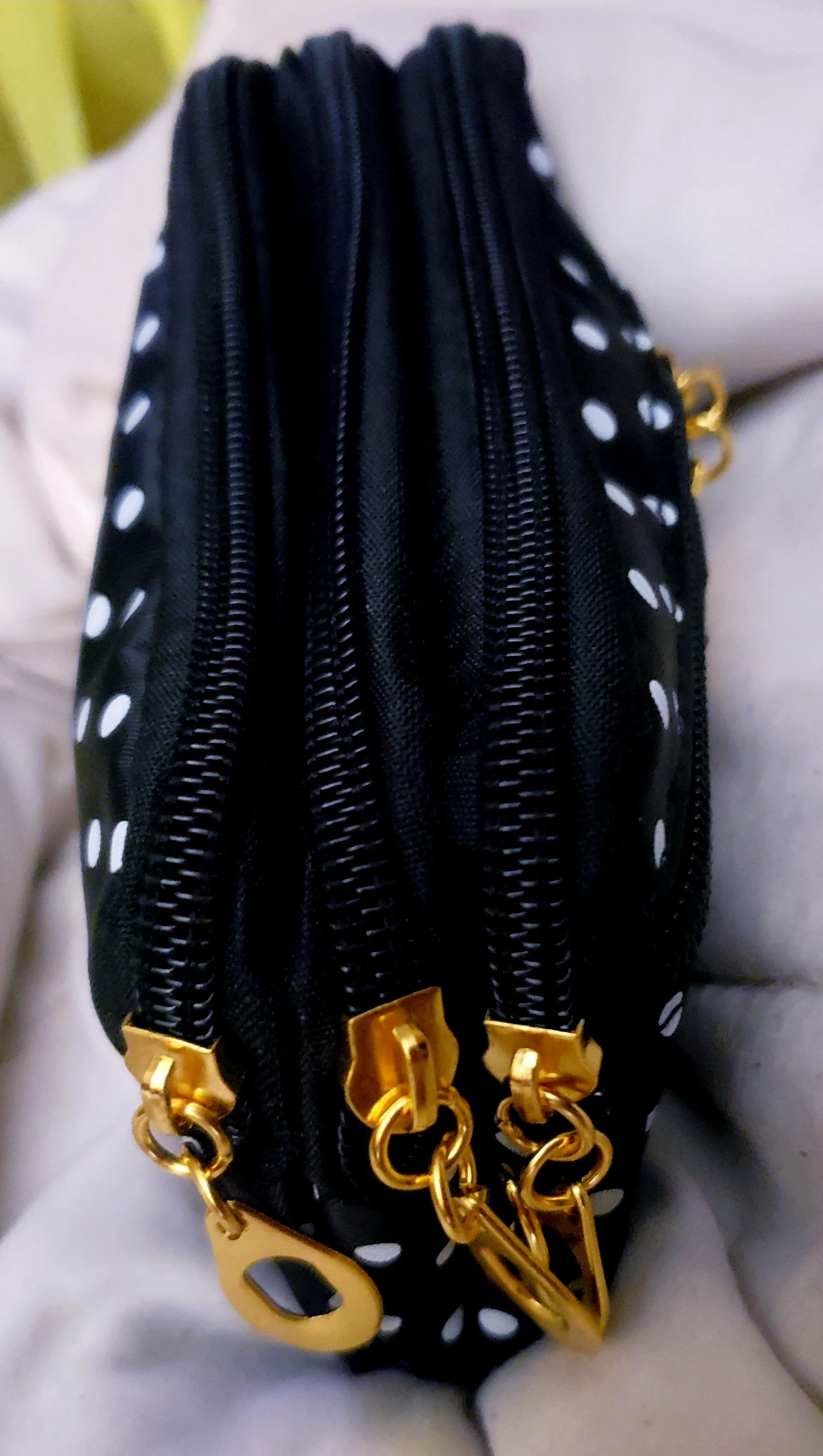 Не плохая сумочка, думала будет чуть больше. Замки зеедают, особенно на уголках. Сразу с первого раза не откроешь.