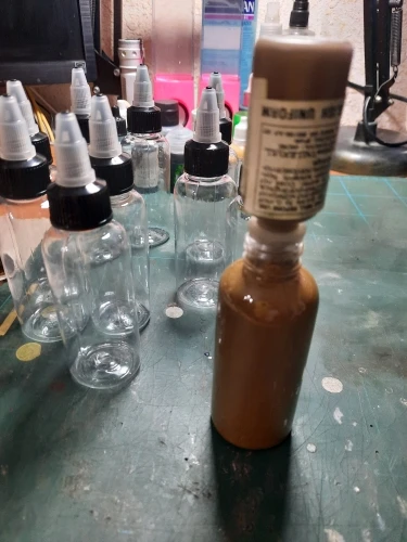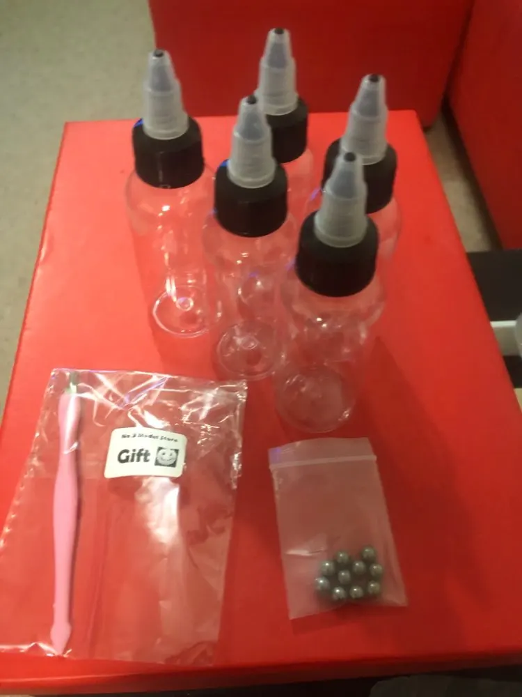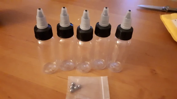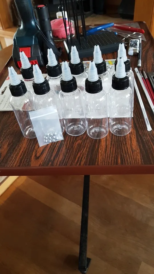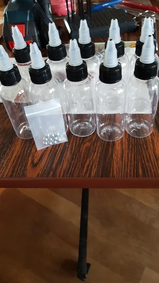 в комплекте к каждой бутылке идёт железный шарик, для смешивания осевшего пигмента, это плюс