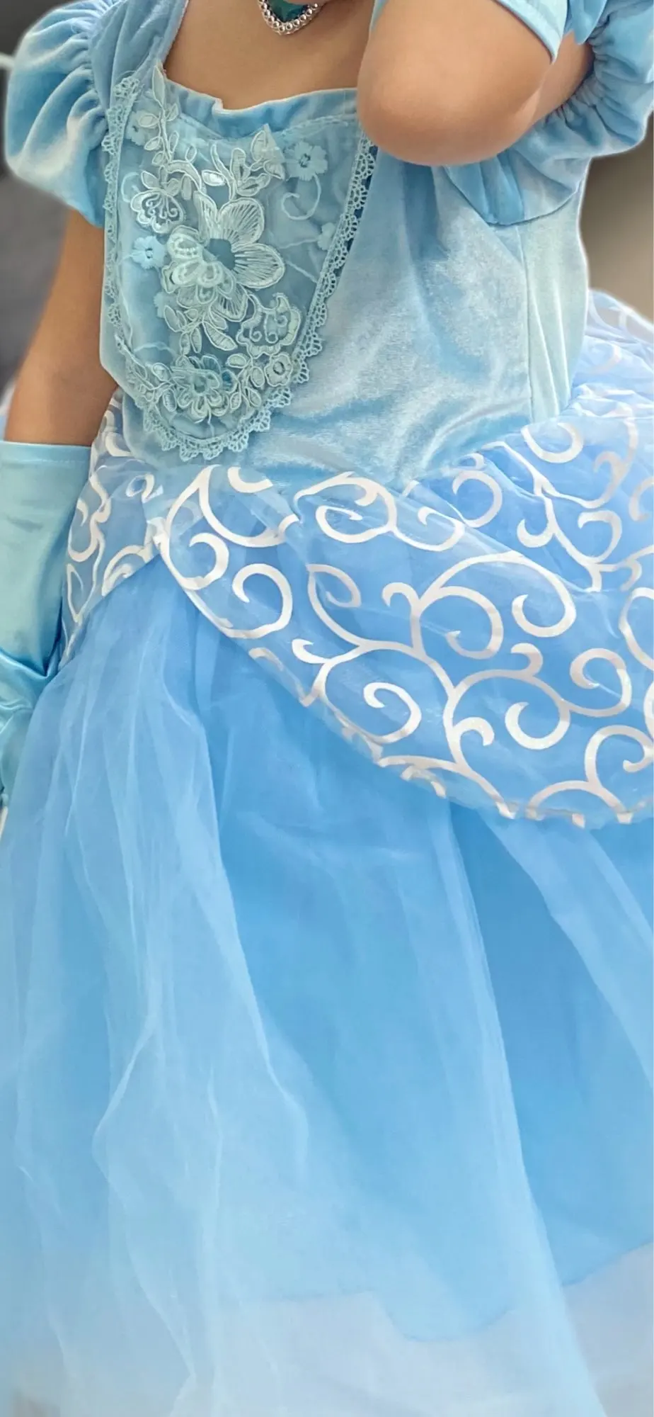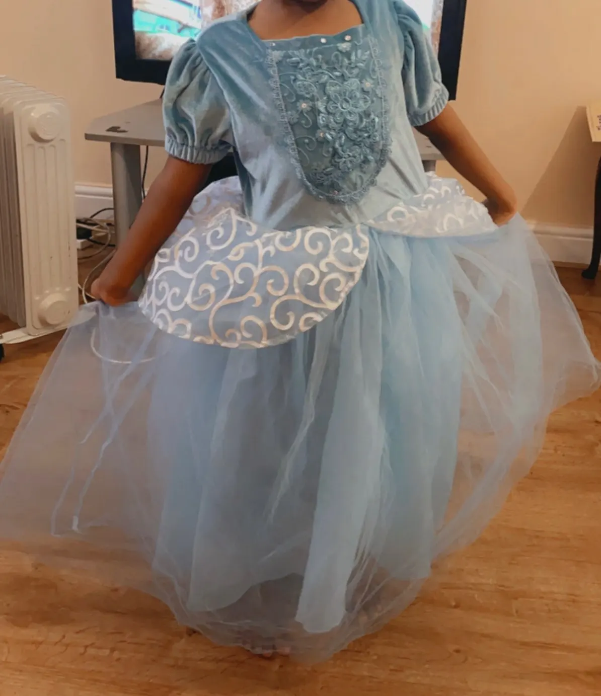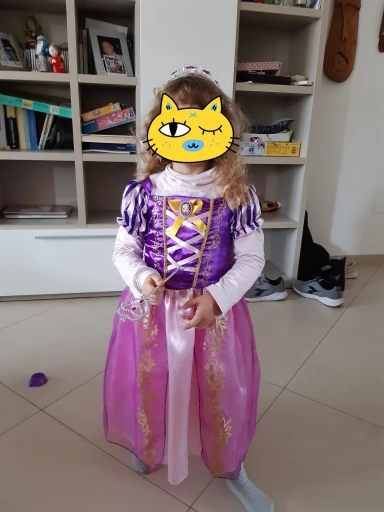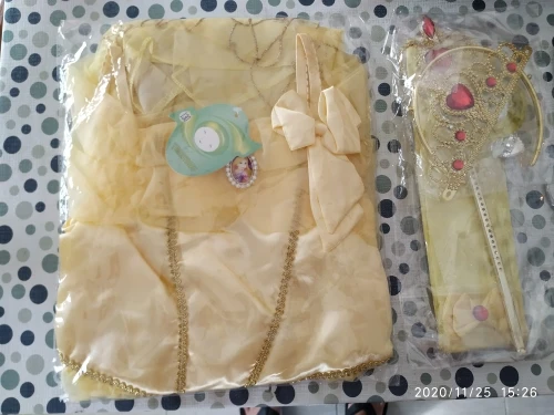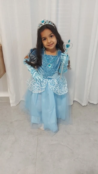 Обалденное платье за свои деньги. Правда я промахнулись с размером, заказала на 5 лет 7. Подошью в ателье. Аксессуары все целые. Все продумано, колье на резинке, клипсы с мягкой застёжкой. В перчатки вложены бумажные вкладыши. Корона пристегивается к обручу. Не ожидала за такую стоимость такую красоту. Юбка, конечно, не такая пышная, как на фото. Верх из бархата, резинки в талии и на рукавах. Но ребенок доволен.