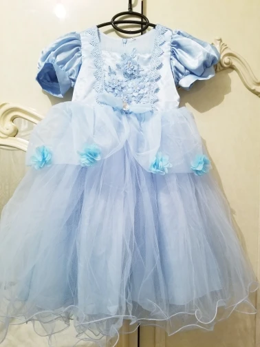 Спасибо большое продавцу за быструю доставку,2недели во Францию. Точное фото платья.Очень красивое. На три годика брали 3Т, по длине платье в пол.Но если девочка рослая,то берите 4Т,потому,что у нас очень мелкая кнопочка.