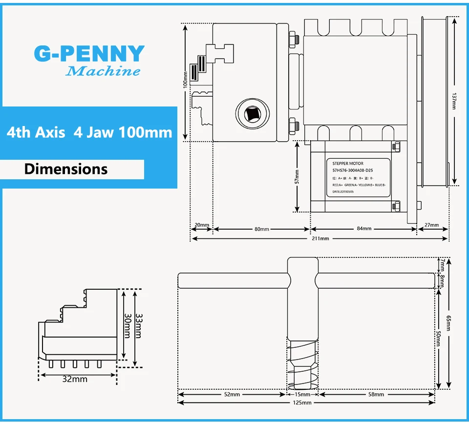 1 шт ..-4th оси 100 мм 4 нижними зажимами