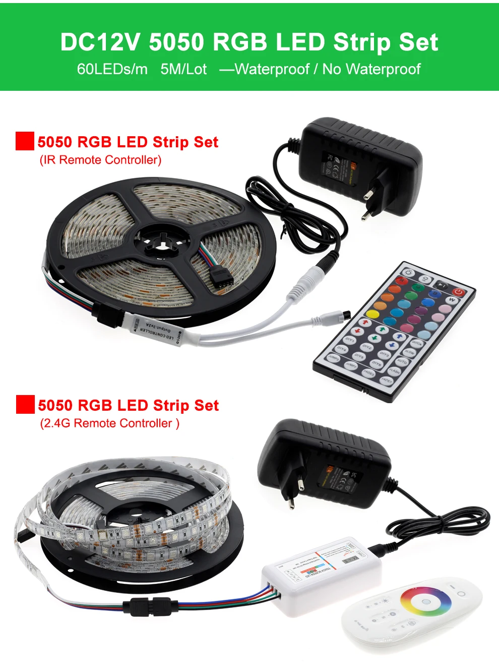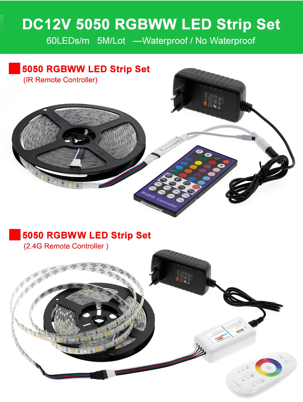 5 м 5050 Светодиодная лента DC12V RGB/RGBW/RGBWW Гибкая световая лента 300 светодиодов RGB цветная светодиодная лента набор + пульт дистанционного управления + адаптер питания