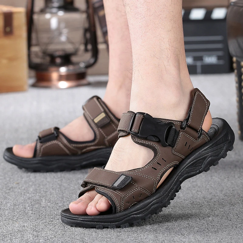 Мужские сандалии из натуральной кожи, Босоножки с открытым носком, ...