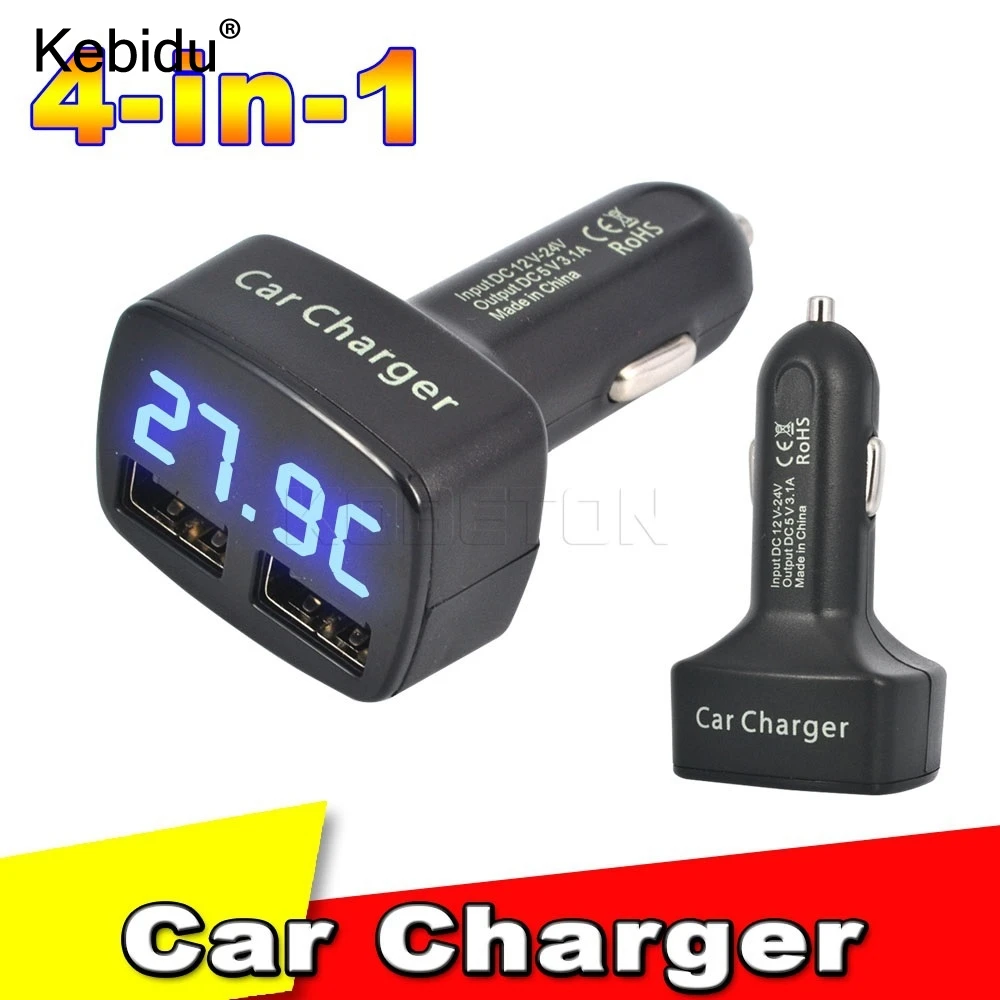 Автомобильное зарядное устройство kebidu, 12-24 В, 4 в 1, двойной постоянный ток 5 В, 3,1 А, USB, измеритель температурынапряжениятока, тестер, адаптер, цифровой дисплей