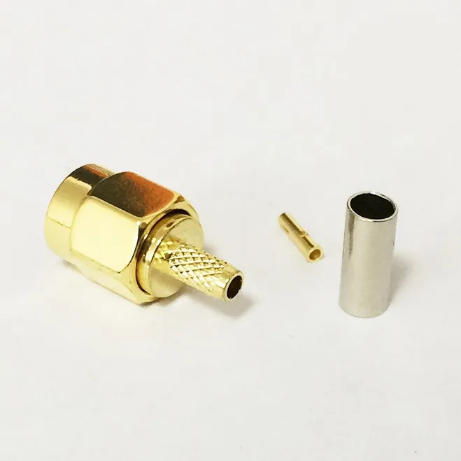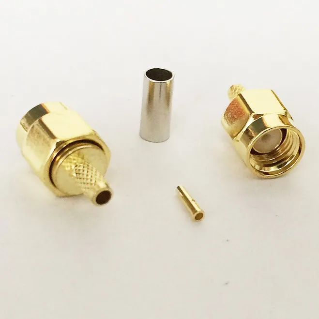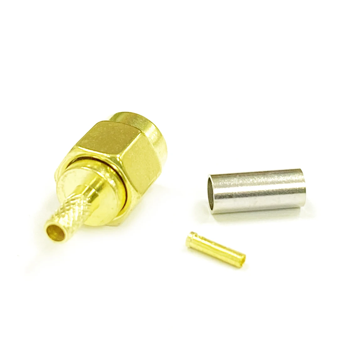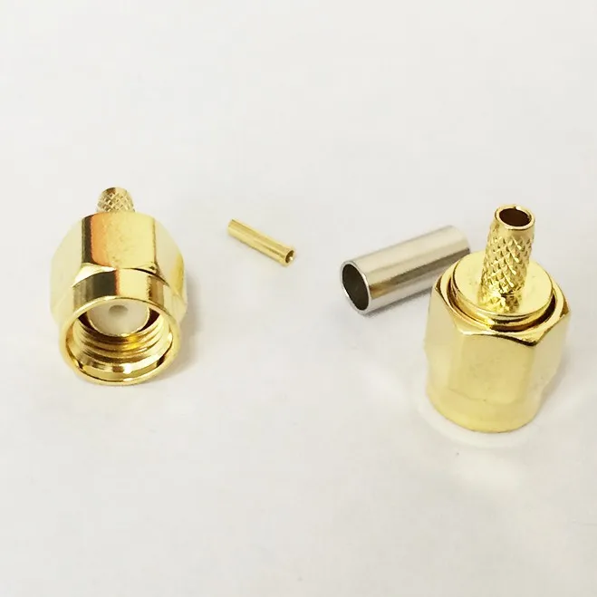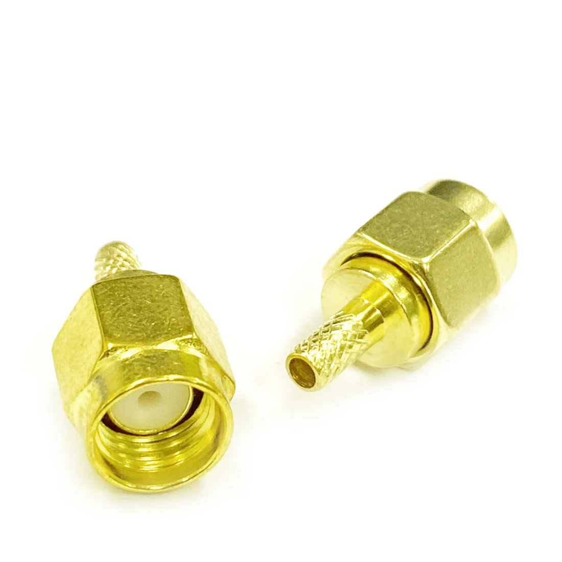 Штекер RP SMA RF, 1 шт., обжимной коаксиальный разъем для кабеля RG316 RG174 LMR100, прямой позолоченный
