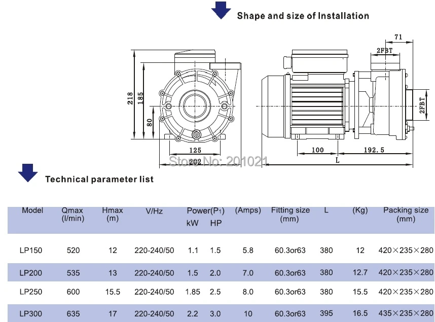 Насос LX для гидромассажной ванны, LP 300, 400 В, 1 cv LP300, 3 л.с...
