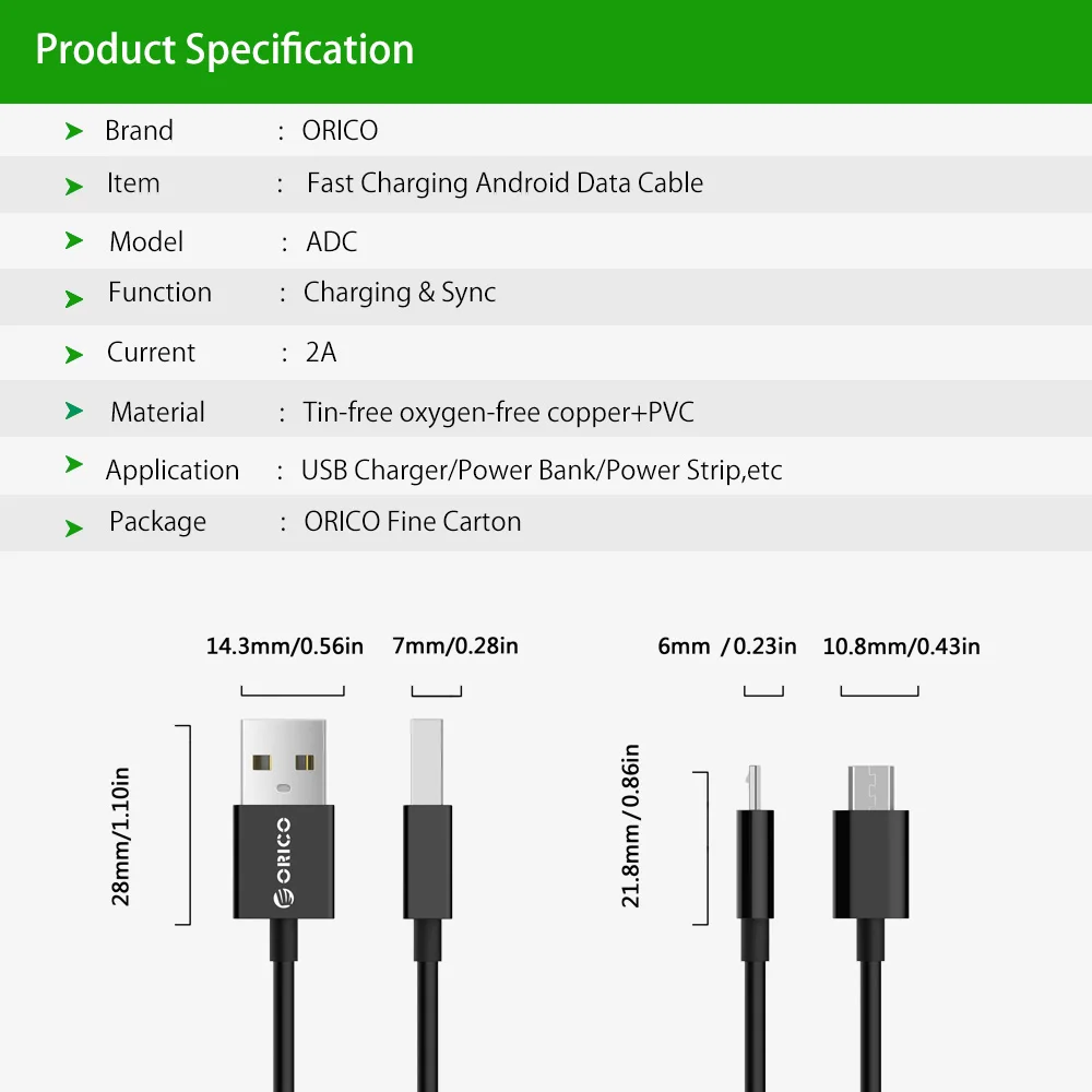 ORICO Micro USB кабель USB 2,0 кабель для быстрой зарядки для Samsung Galaxy Xiaomi Huawei HTC LG мобильный телефон синхронизация даты