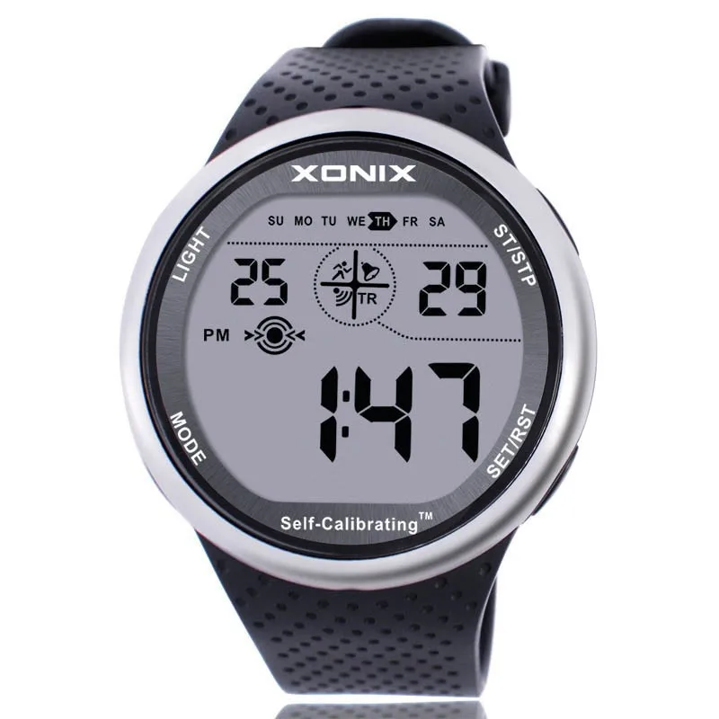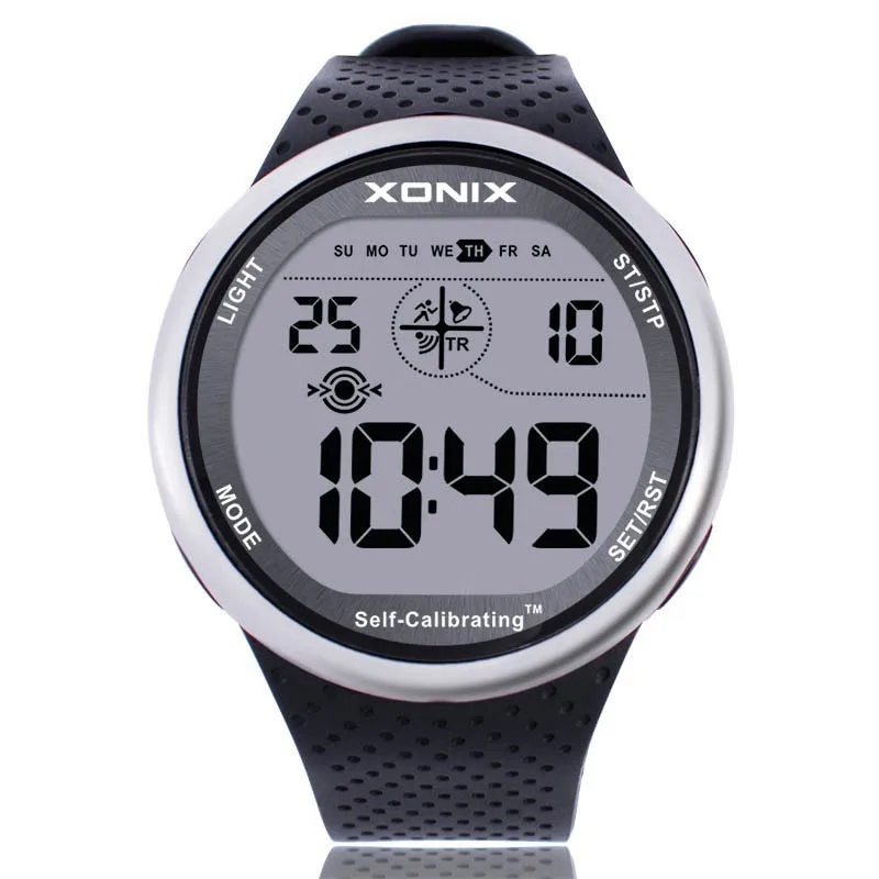 XONIX Мужские Спортивные Часы Цифровой Водонепроницаемый 100 м Chrono Self Calibrating Силиконовый Ремешок Многофункциональный Плавать Открытый Наручные Часы
