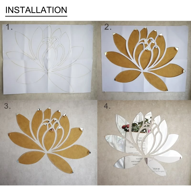 3D Лотос, декоративная Зеркальная Наклейка на стену, цветок, декор ...