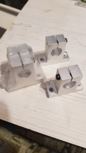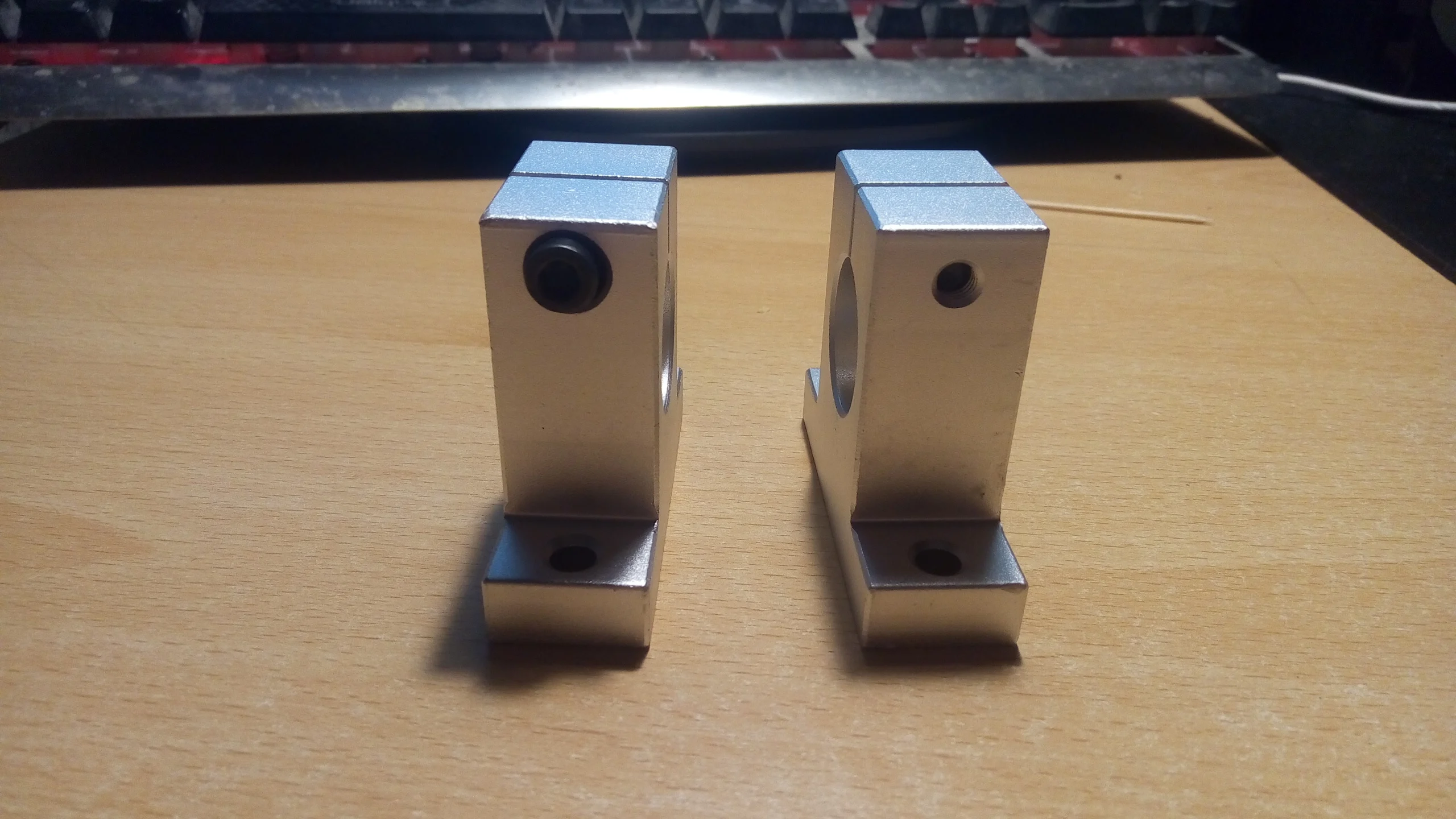 Детали имеют плохую геометрию. Невыдержены углы 90 градусов. Такое впечатление что пилили с проката ленточной пилой и пила нашинковала паралепипедов. Верхние пропилы которые зажимают вал на всех деталях под разными углами. После детали обработали в галотовке придав им блеск. Что то собрать точное с этих деталей без доработки "Напильником" невозможно.