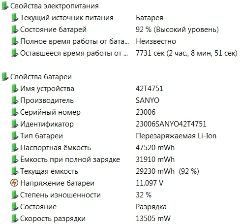 Дошло в Литву почти за 2 месяца. Установил в ноутбук Lenovo T420. Аккумулятор заработал без проблем. Пришёл заряженным на 66%. Сделал заряд/разряд по инструкции. Скрины программы AIDA64: на первом - старый аккумулятор, на втором - новый после установки в ноутбук, на третьем - после зарядки до 100%. Спасибо!