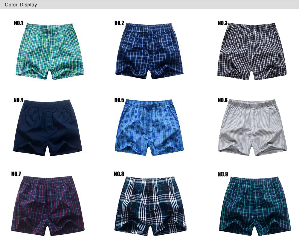 Мужское нижнее белье Боксеры в шотландскую клетку Трусы из 100% хлопка Мужские трусики в полоску Свободные высококачественные негабаритные дышащие боксерские шорты Большой размер Российский размер Негабаритные сексуаль