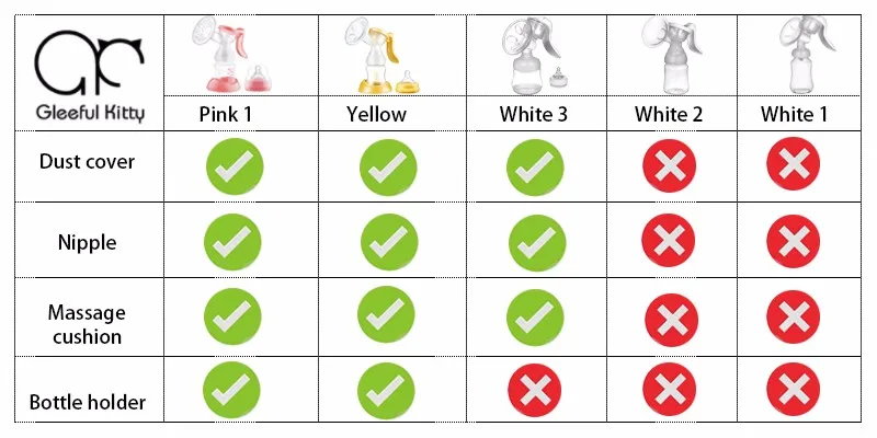 FQA Q1: Почему моя посылка без соска (пылезащитный чехол, массажная подушка, держатель для бутылки)? A1: Пожалуйста, выберите нужный вам тип. Различный тип с различными частями, и нужно платить разные деньги. Q2: Почему моя грудь с двумя отверстиями? A2: Это нормальный вход и выход воздуха для дыхания. Q3: почему молокоотсос с асимметричным отверстием A3: заводская проблема, не проблема индивидуального молокоотсоса, это не влияет на работу