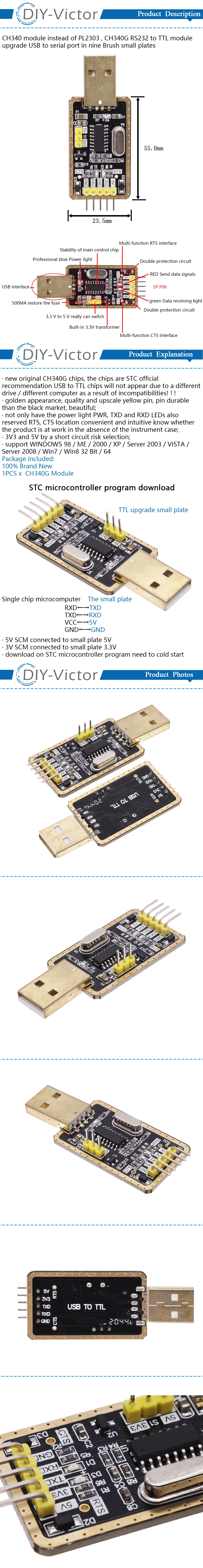 Модуль CH340 вместо PL2303, модуль CH340G RS232 в TTL обновлён с USB на последовательный порт в девяти небольших пластинах icon star icon star icon star icon star icon star