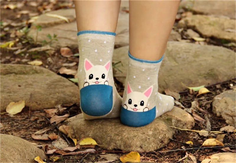 Рекомендую! Женские хлопковые носки с мультяшными животными, модные женские Носки с рисунком мопса, границы, колли, забавные носки-трубы