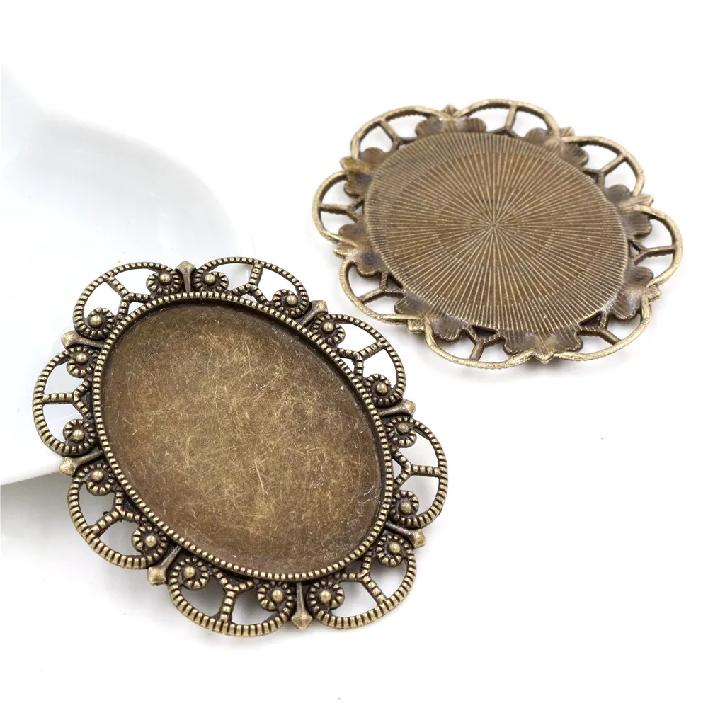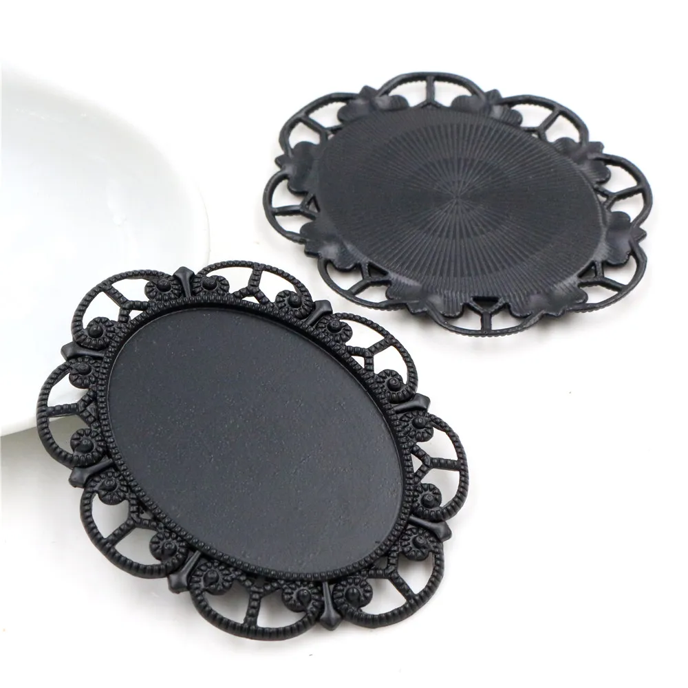 Новая мода 5 шт 30x40 мм внутренний размер Античная Посеребреннаябронзачерный цветок стиль Кабошон База Установка Подвески кулон
