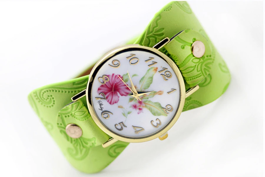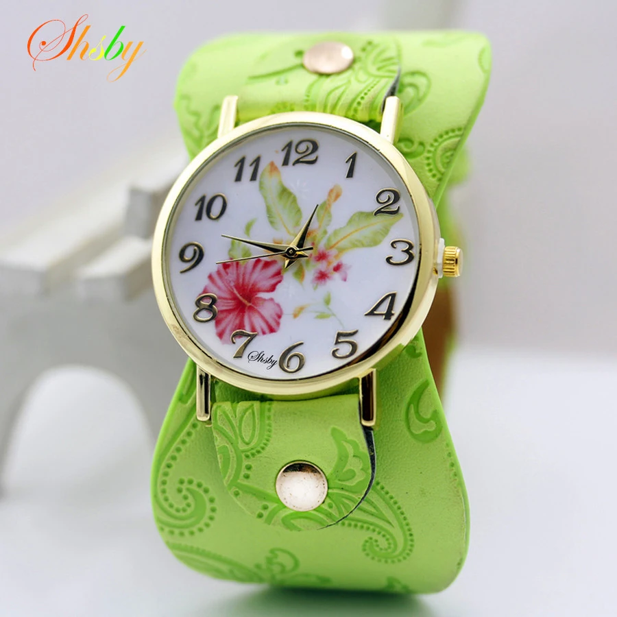 Shsby Новое поступление наручные часы с кожаным браслетом с принтом часы с широким ремешком платье часы с цветами Модные женские повседневные часы подарок для девушки
