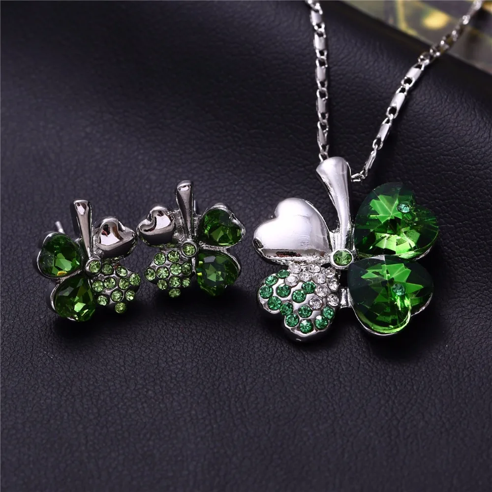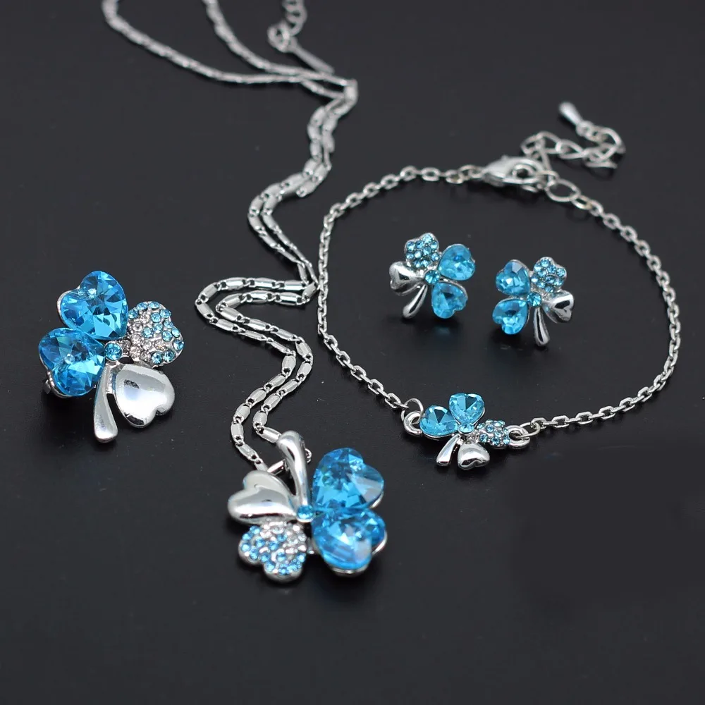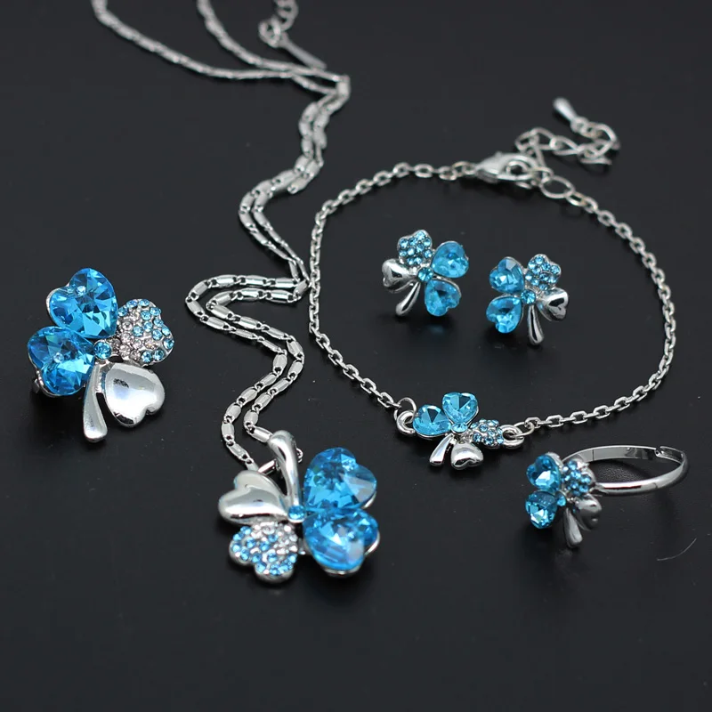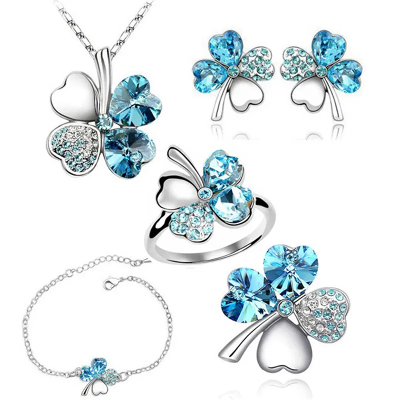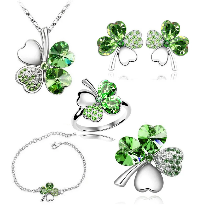 Комплект ювелирных изделий из 5 предметов, ожерелье, серьги, кольца, браслет, брошь, кольцо, розовое золото, кристалл клевер, 4 листа, подвеска в форме сердца, 2019