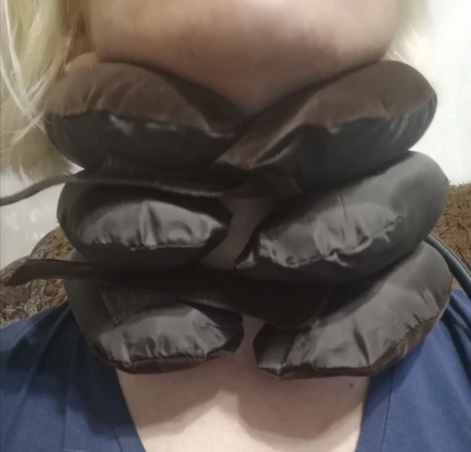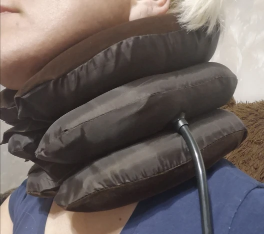 Интересное решение по растяжке шейного отдела позвоночника. Можно самостоятельно контролировать степень вытяжки по ощущениям . Немного не герметичная штука, спускает после накачивания, поэтому надо подкачивать каждую минуту . Это не особо проблема, зато не уснёшь ). За такую цену рекомендую, пригодится всем