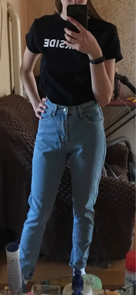 Джинсы хорошего качества, на рост 170см длина идеальная, по размеру подошли, мои параметры 67-94, доставка 2 недели. НО в чёрном цвете не понравились((( заказывала светло-голубые, они смотрятся классно, а у чёрных ткань грубее, вообще не выигрышный цвет.