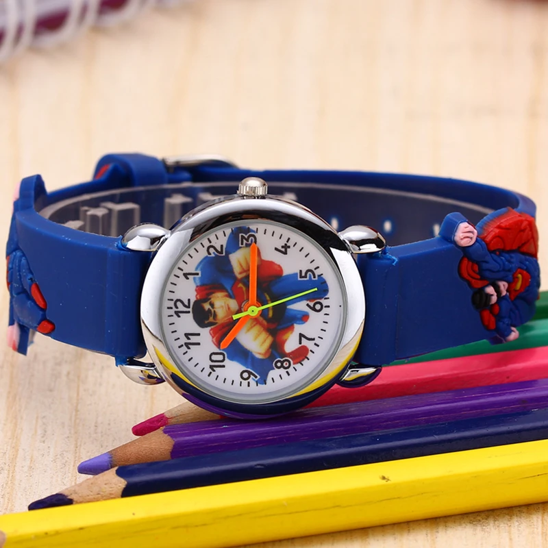 Детские Мультяшные часы супер человек 3D резиновый ремешок Детские ...