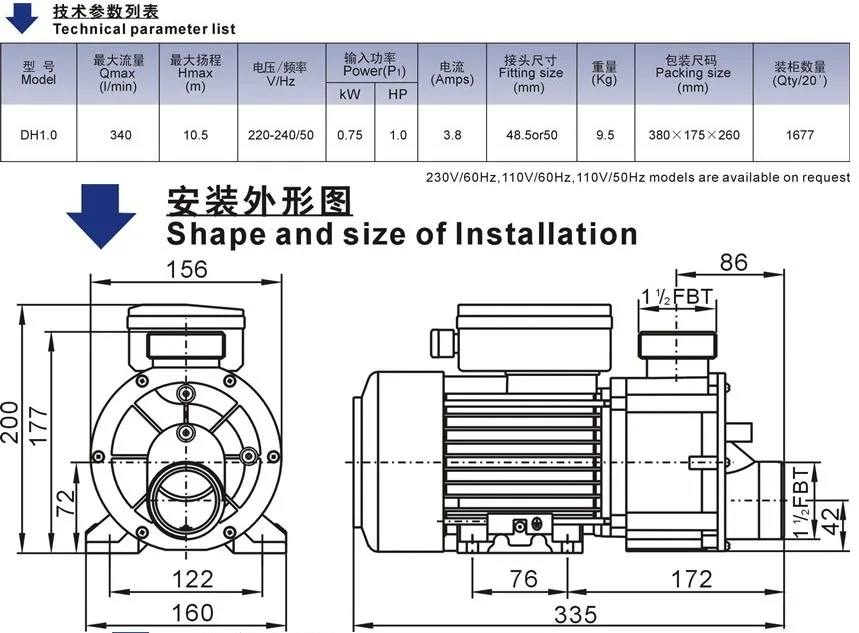 Насос для ванны DH1.0 1 л. С.750 Вт220 В-50 Гц или 220 В 60 Гц по с...