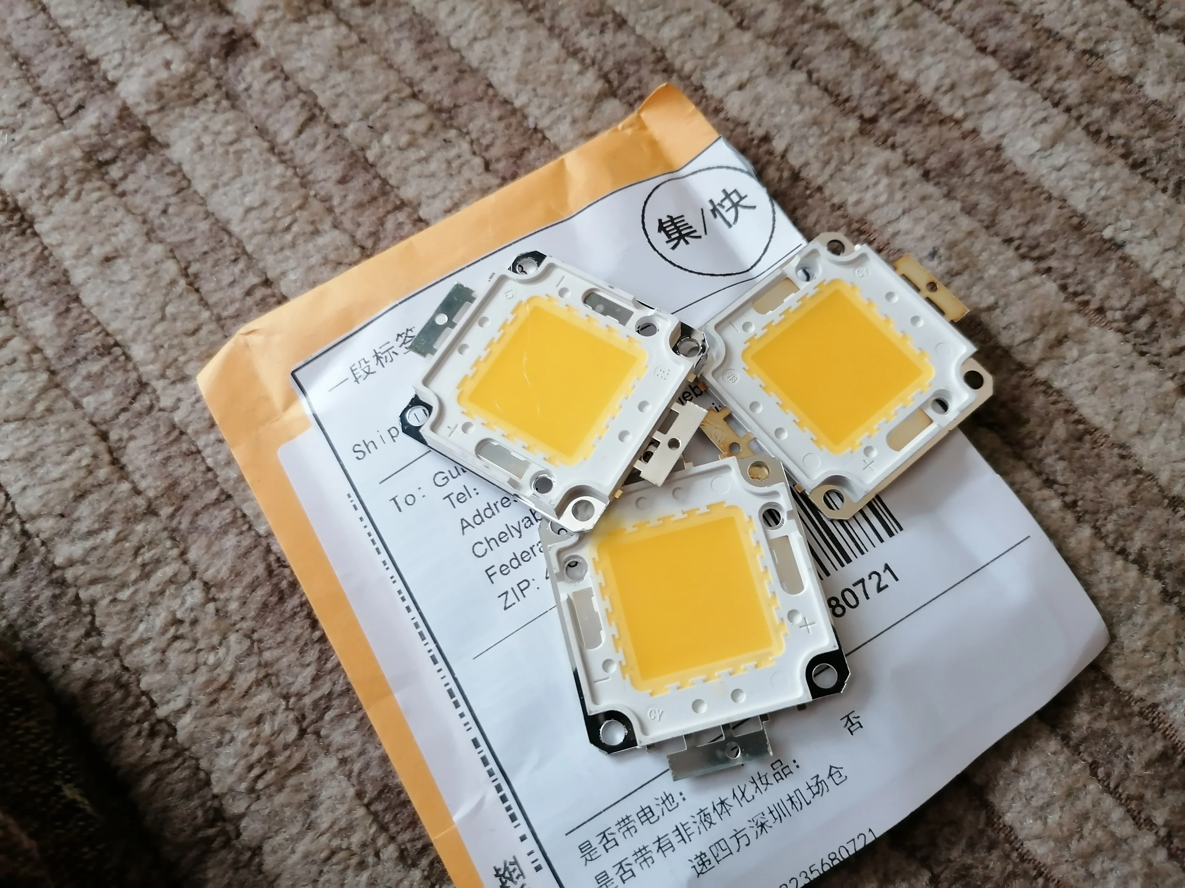 Вчера получил заказанный светодиод на 100 Вт, пришел довольно быстро за три недели. Для начала я к нему подключил 24 вольт и увидел что в нем все 100 маленьких светодиода рабочие, а далее подал 36 Вольт и увидел как он невыносимо ярко светит ток был 2.6 Ампер что свидетельствует о соответствии заявленой мощности. Хороший товар, рекомендую и думаю что в будущем буду заказывать еще.