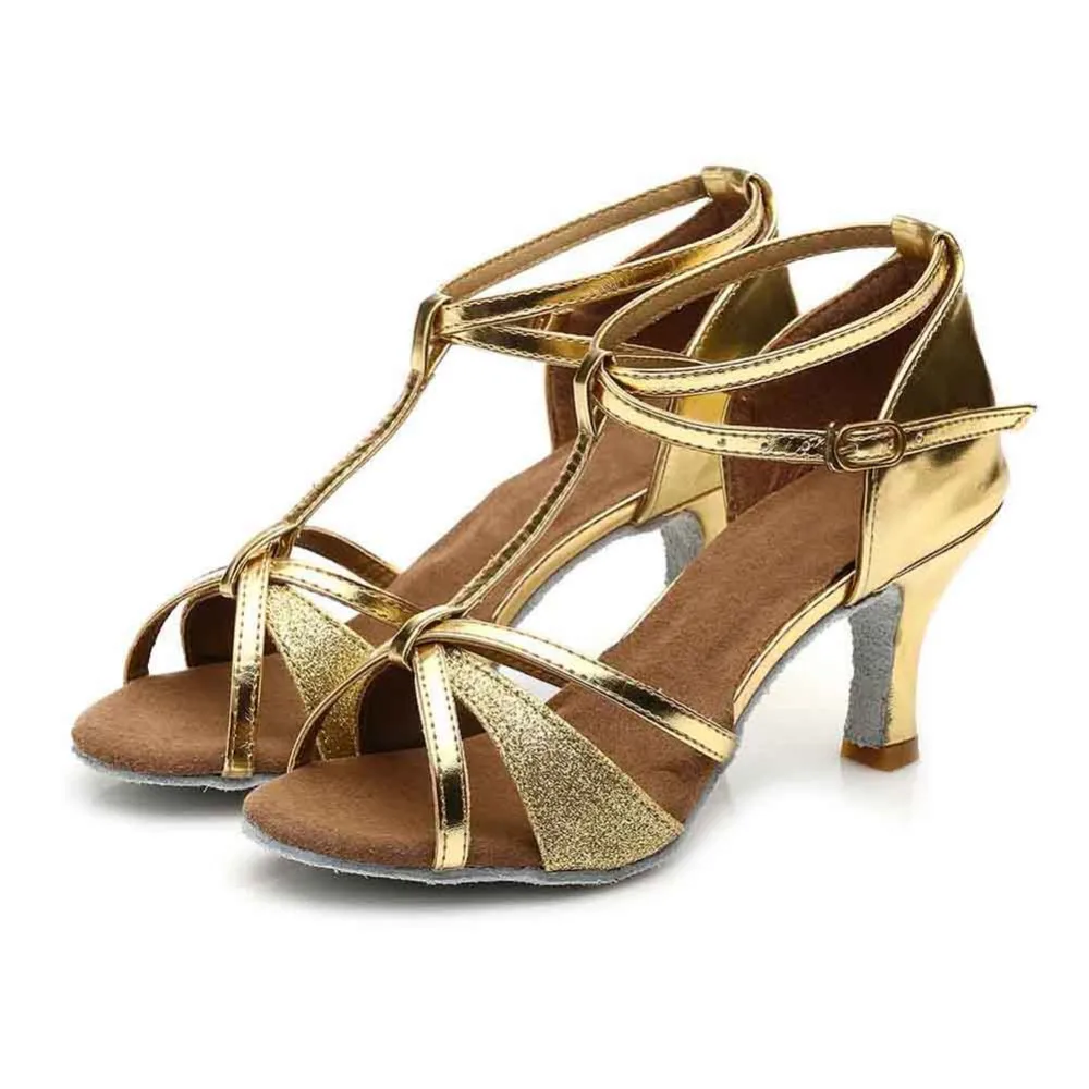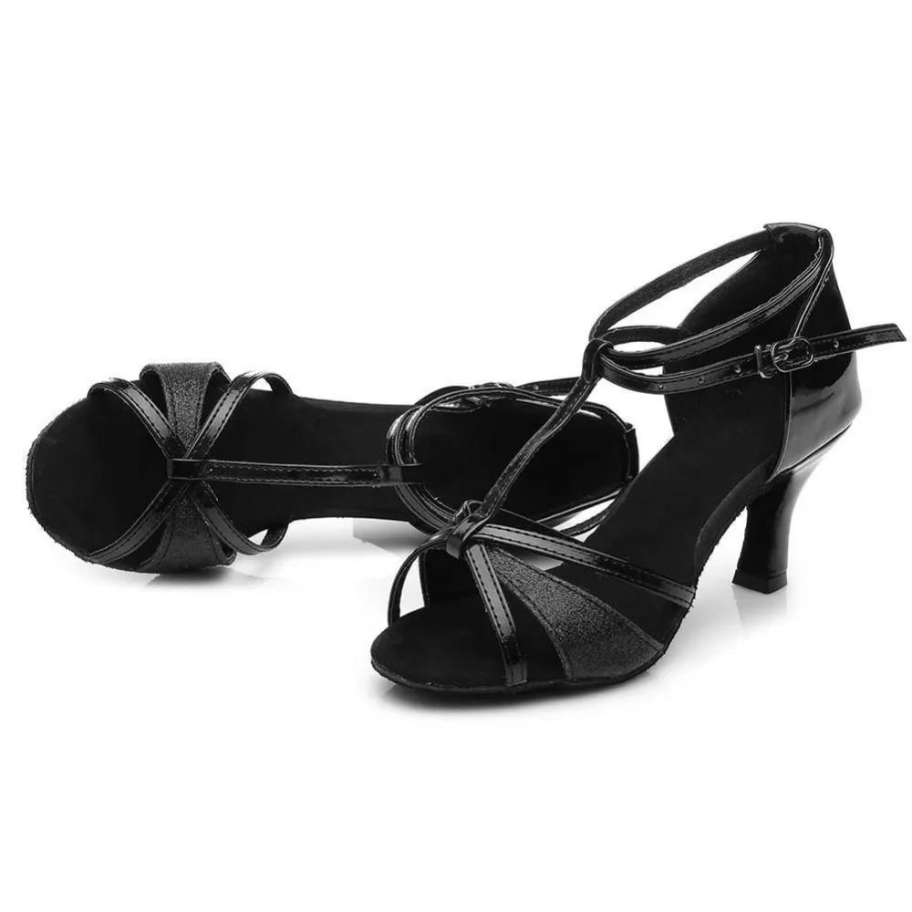 Туфли для бальных танцев для девочек, женские туфли для латиноамериканских танцев, танцев, сальсы, обувь для тренировок, Т-образные шнурки, черные, коричневые, на каблуке 57 см