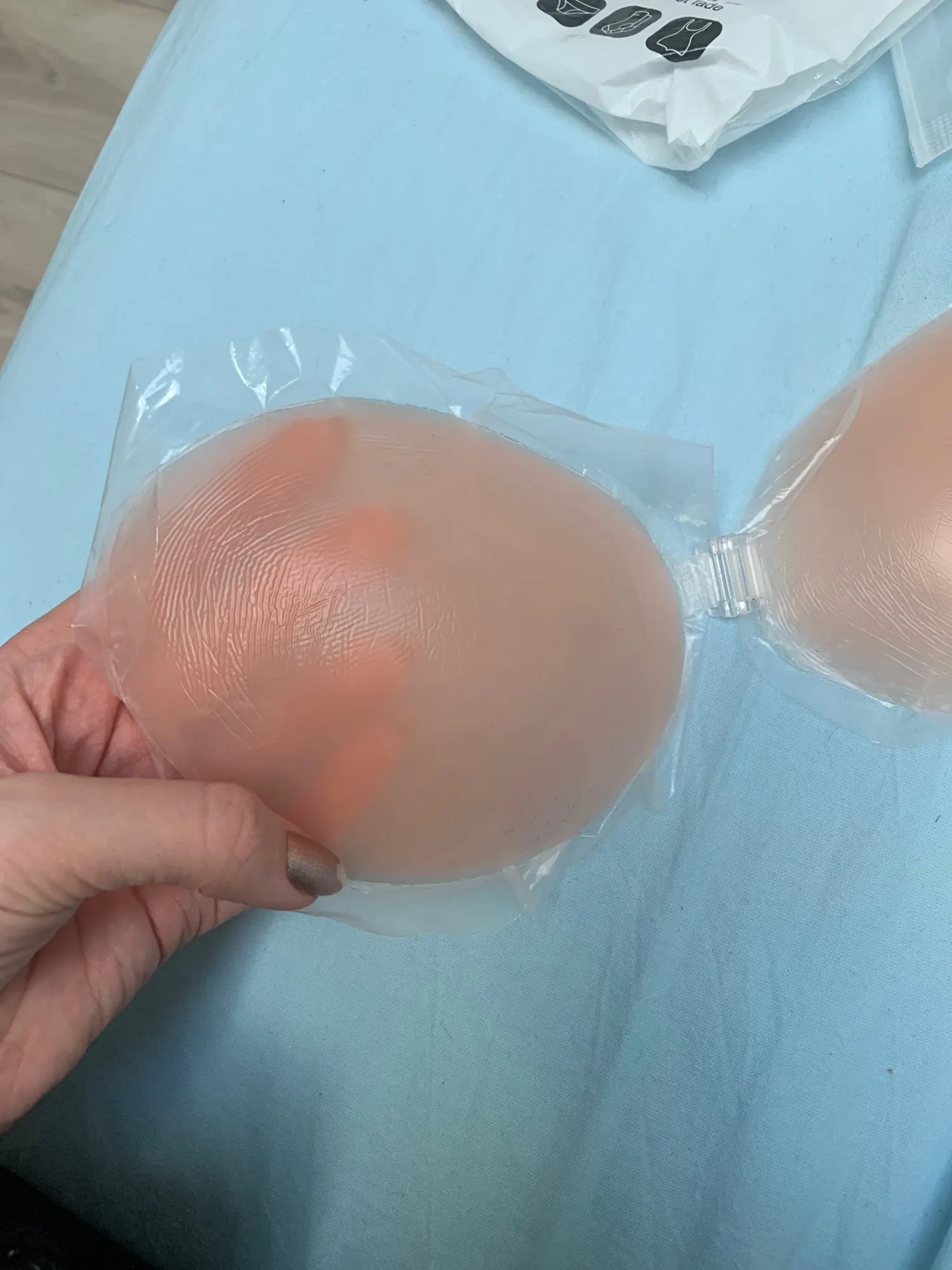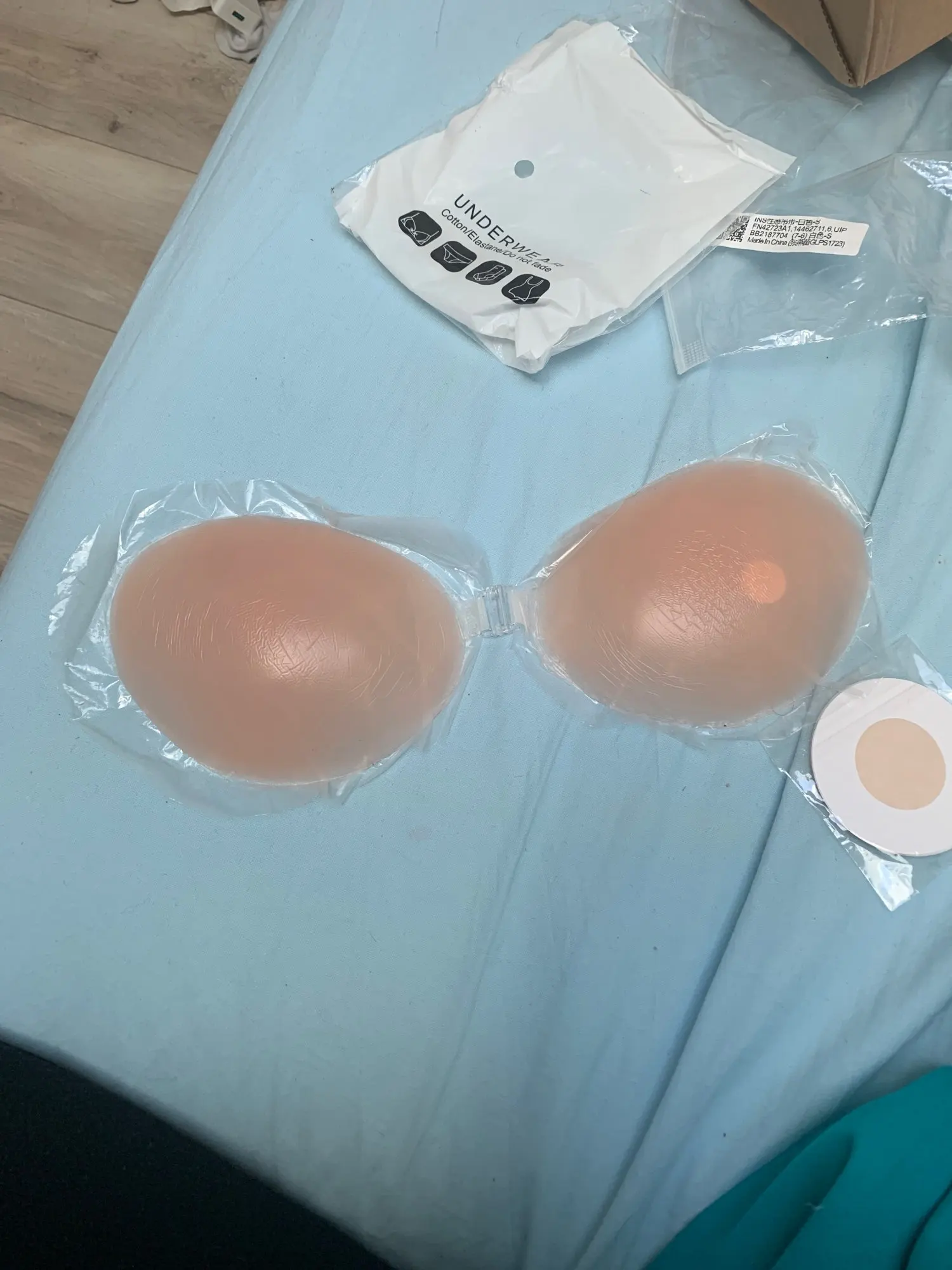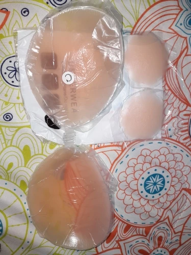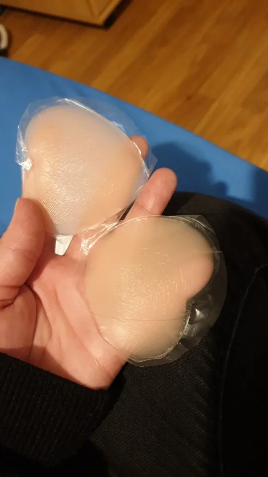 Купил это снова для моей сестры. Она предпочитает силикон поверх липких бюстгальтеров. Я не уверен, что наклейки в комплект входят, потому что меня там не было.