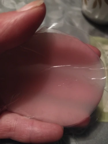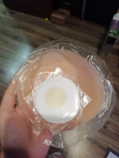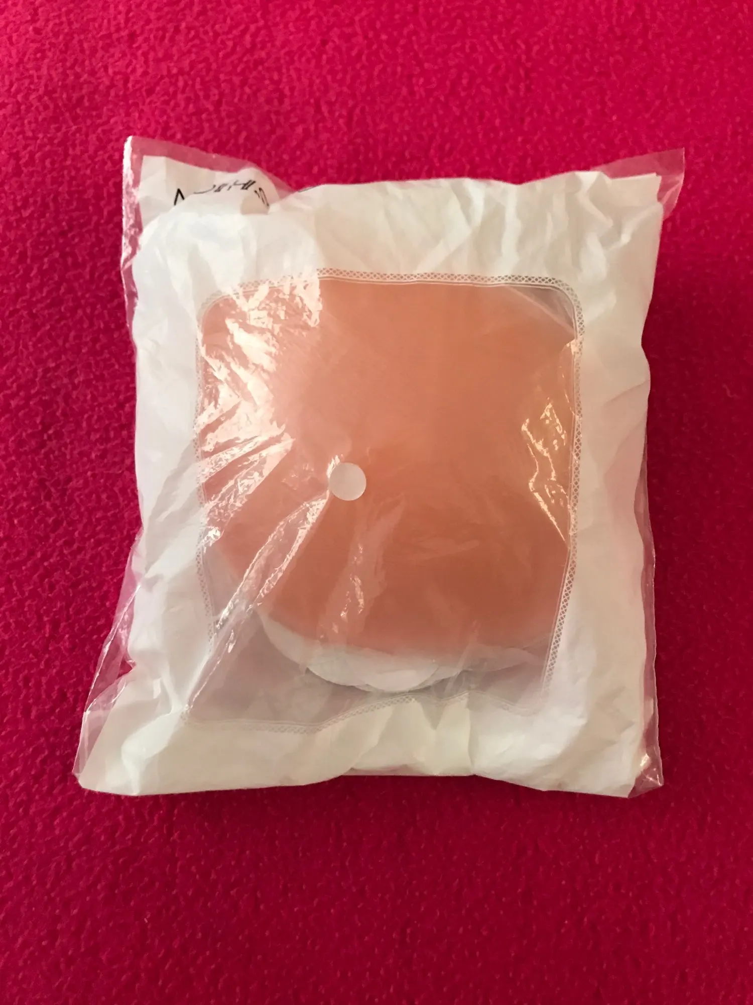Пришло быстро, за две недели. Упаковано не очень удачно - в простой целофановый черный пакет, но пришел целым. Размер конечно далек от истины, брала размер D по факту разве что B, даже на C скорее всего будет мал (маркировка стоит D), клеится неплохо, наклейки для сосков вообще крошечные 5-6 см в диаметре.