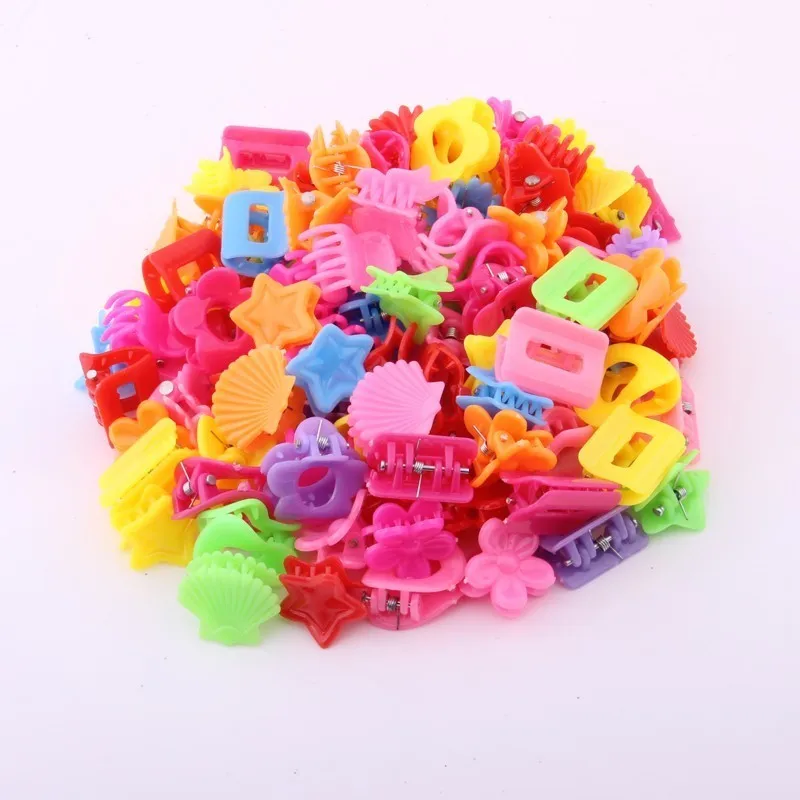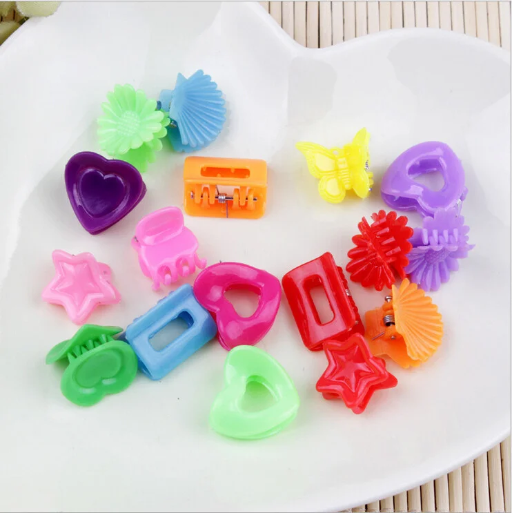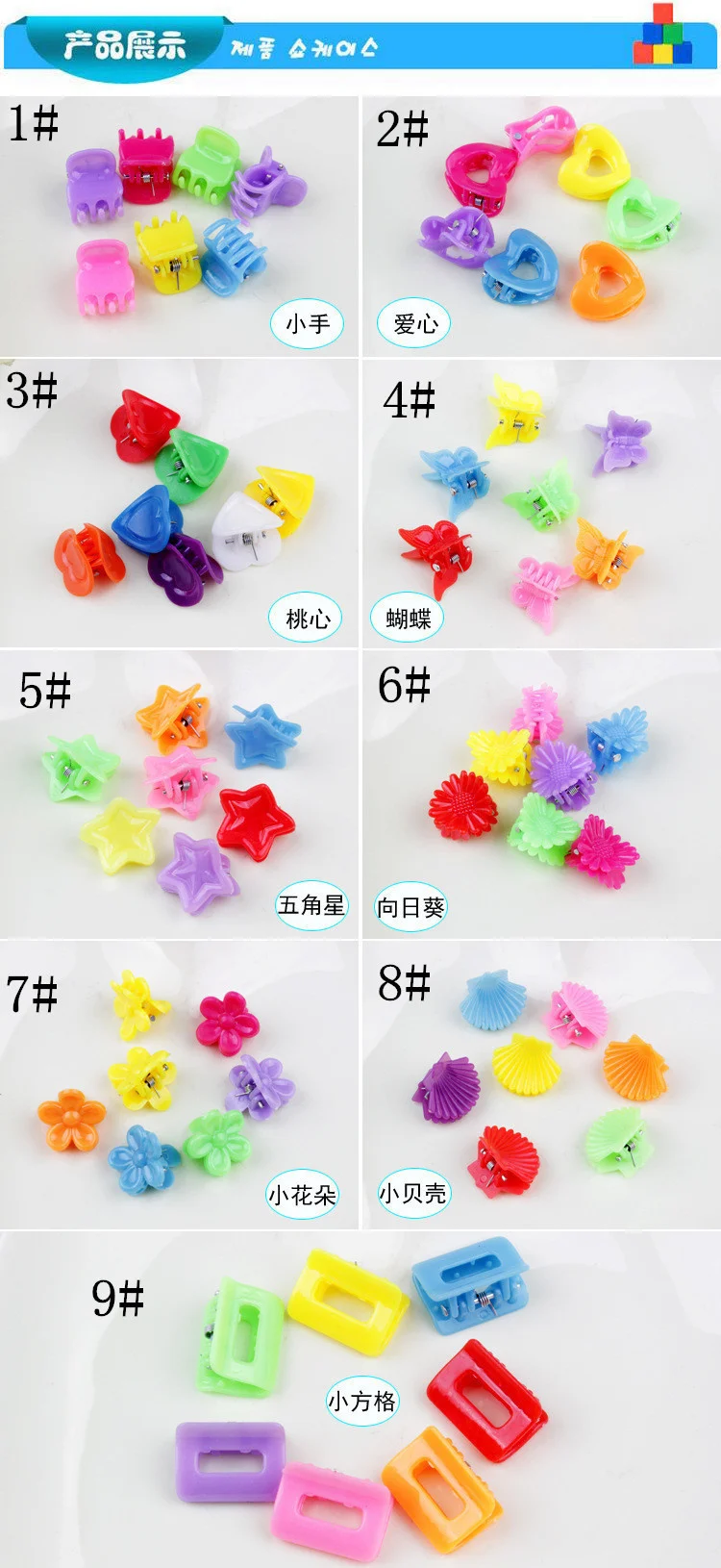 Модная Маленькая Шпилька для девочек, яркие цвета, пластиковые мини-Когти для волос, милые бабочки, сердце, цветок, звезда, заколки для волос, очаровательные
