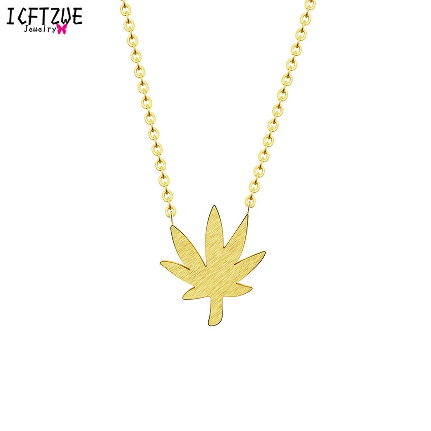 Простое ювелирное изделие Colar Choker Atacado, подвеска из конопли лист дерева, женская подвеска из нержавеющей стали, ожерелье золотистого цвета, ожерелье кленовый лист