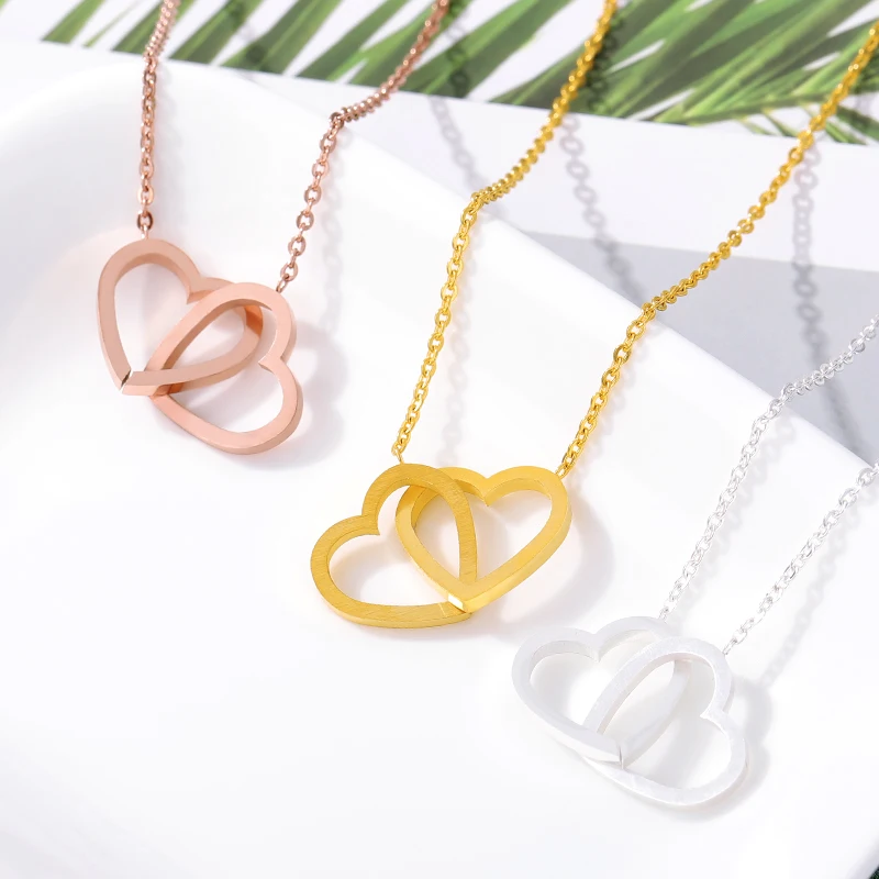 Dianshangkaituozhe Нержавеющая сталь женщин себе Ожерелья для мужчин золото Двойное сердце Ожерелья для мужчин Подвески Best друзья невесты подарок