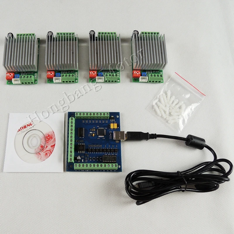 ЧПУ mach3 usb 4 оси комплект, 4 шт. TB6600 1 Ось Драйвер шагового двигателя + mach3 4 оси USB ЧПУ плата контроллера шагового двигателя 100 кГц