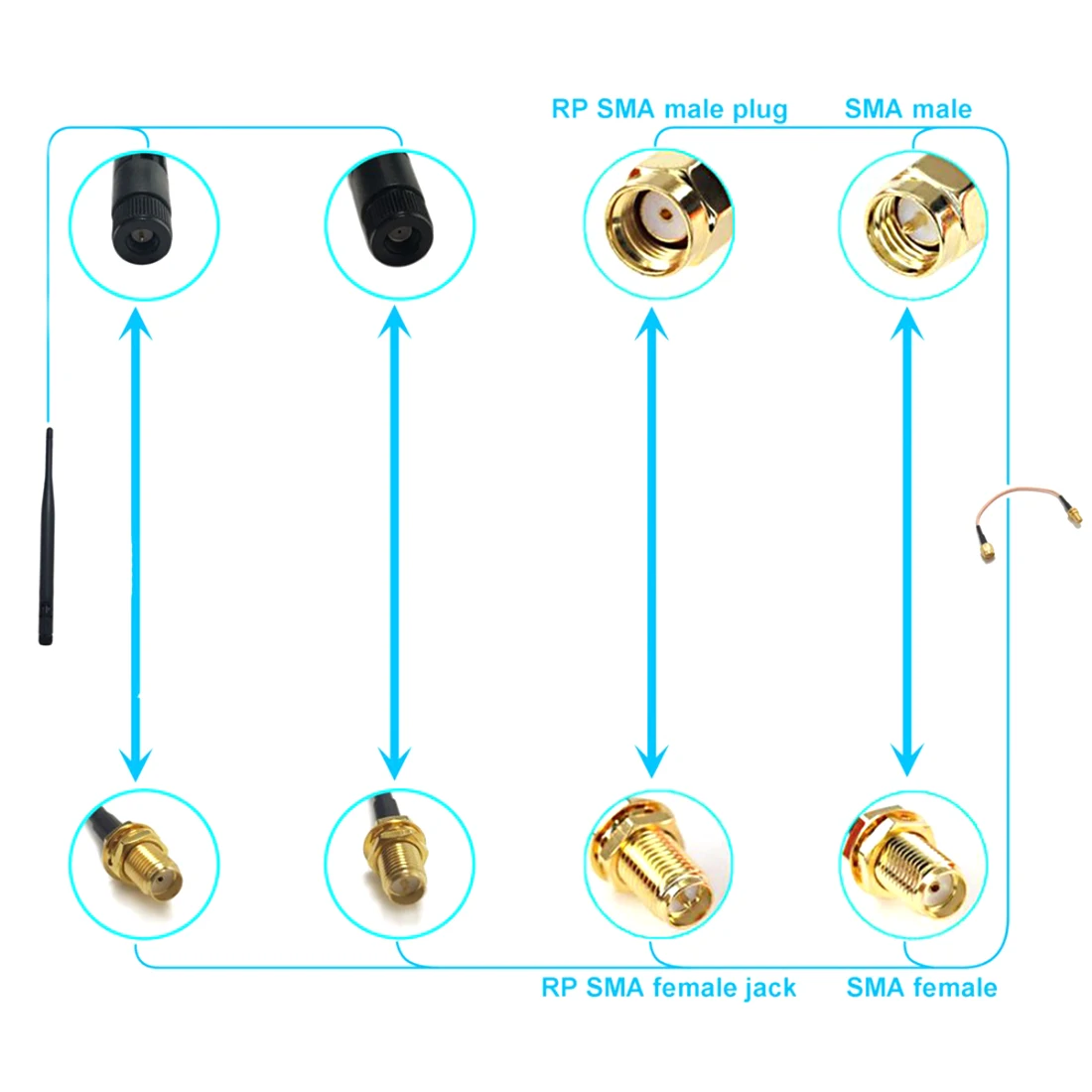 Удлинительный кабель с антенной Wi-Fi, штекер SMA в разъем RP SMA, ...