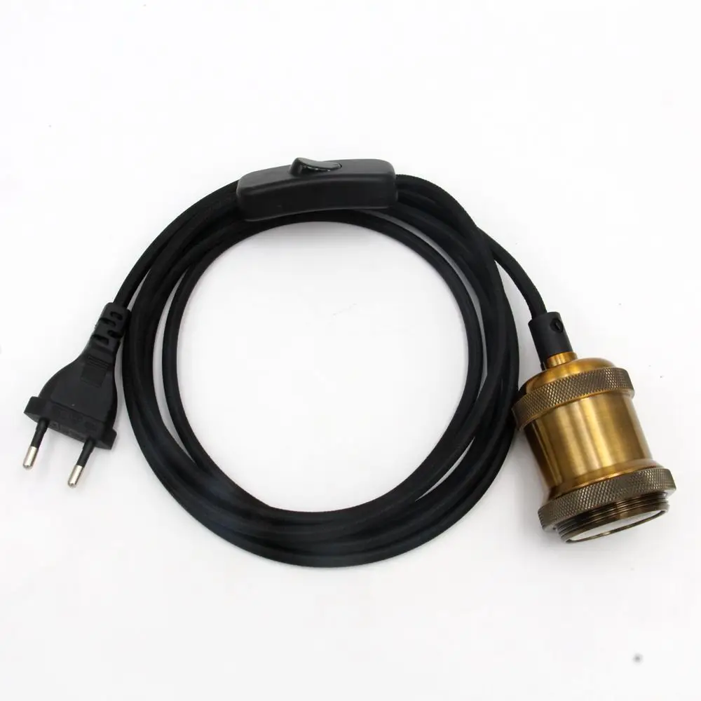 Шнур питания с выключателем E27, 2 метра, европейская вилка, винтажный держатель светильник пы, подвесные светильники